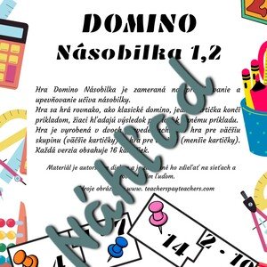 Domino na precvičovanie násobilky číslom 1, 2. Hra v dvoch verziách, pre dvojice, aj pre väčšiu skupinu.