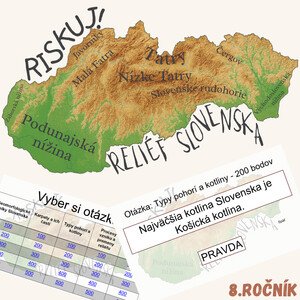 Materiál RISKUJ! – Reliéf Slovenska je interaktívna a súťažná učebná pomôcka, ktorá pomáha žiakom 8. ročníka zopakovať a