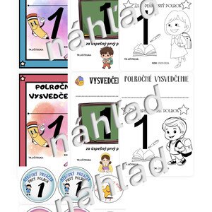 Súbor obsahuje vysvedčenia a medaile určené pre prvý ročník v prvom polroku.🏅 2 motívy farebného polročného vysvedčenia