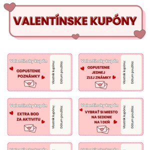 Odmeňte deti na Valentína kupónmi, ktoré im dajú trocha slobody vo výučbe. Súbor obsahuje 20 kupónov.
