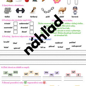 Materiál obsahuje: pracovné listy s určovaním začiatočnej hlásky slova, pracovné listy so zameraním na určovanie počtu