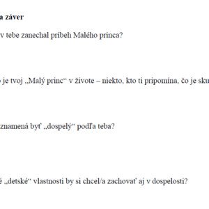 Popis vzdelávacieho materiálu – pracovný list MP.docx Názov: Pracovný list k dielu Antoine de Saint‑Exupéry: Malý princ