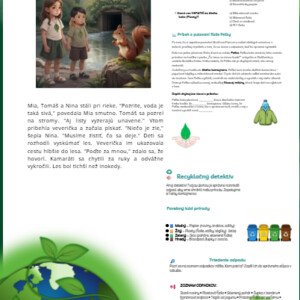 📦 Čo materiál obsahuje? 📖 Motivačný príbeh o ochrane prírody ♻ Úlohy na triedenie odpadu podľa farieb kontajnerov 🧠 Kvíz