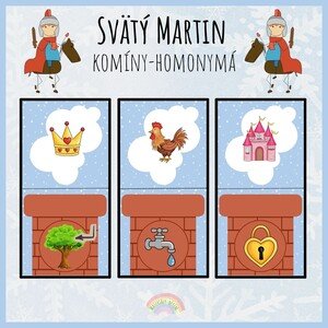 Súbor obsahuje 12 kartičiek s obrázkami rozdelenými na dve polovice – oblak a komín. Každá dvojica tvorí slová, ktoré