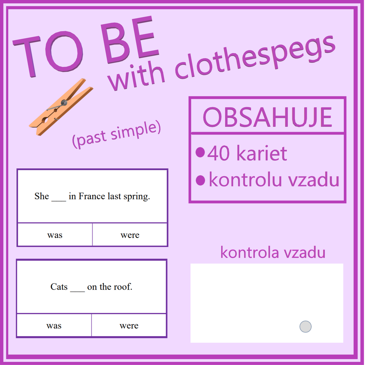 Obľúbená aktivita s štipcami na precvičenie slovesa BYŤ v angličtine. Obsahuje jednoduché vety v minulom jednoduchom čase a tiež niekoľko súvetí. Žiak pomocou štipca alebo sponky označí správny tvar slovesa (was, were). Obsahuje kladné vety a niekoľko otázok. Po otočení kartičky žiak rovno vidí, či zvolil možnosť dobre. Materiál stačí obojstranne vytlačiť, prípadne zalaminovať a nastrihať.