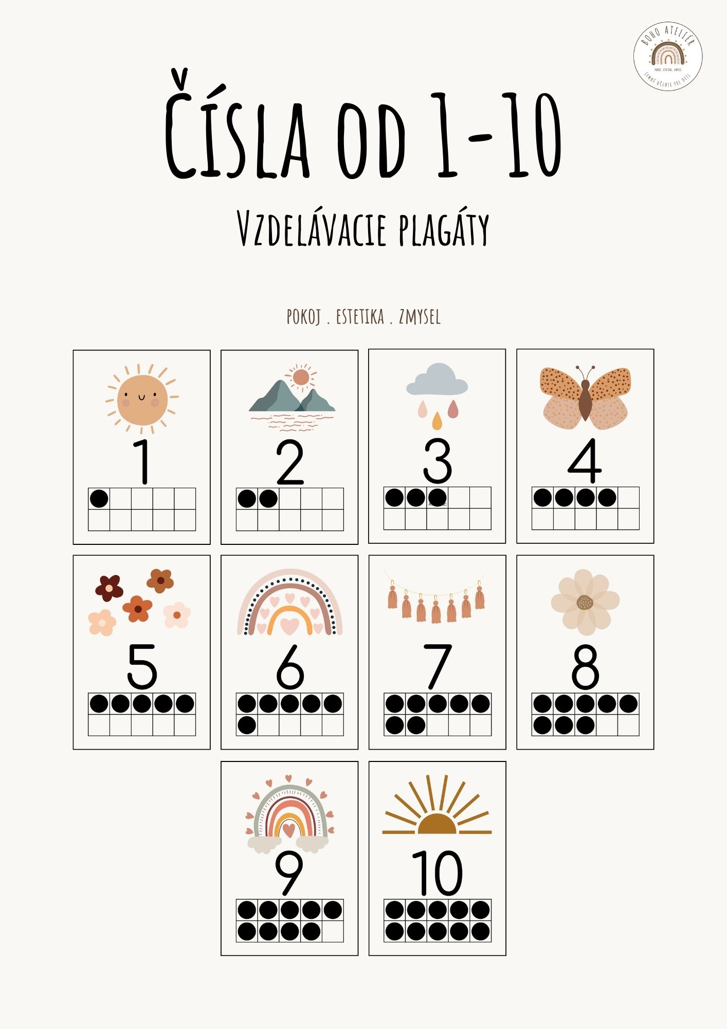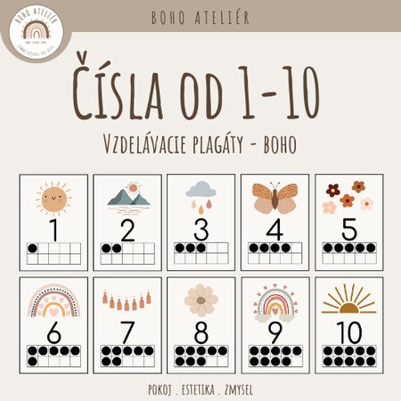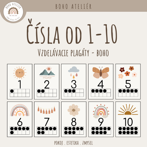 Plagáty z Boho ateliéru prinášajú do učenia čísiel pokoj, jednoduchosť a estetiku, ktorá rešpektuje detské vnímanie a tempo učenia.