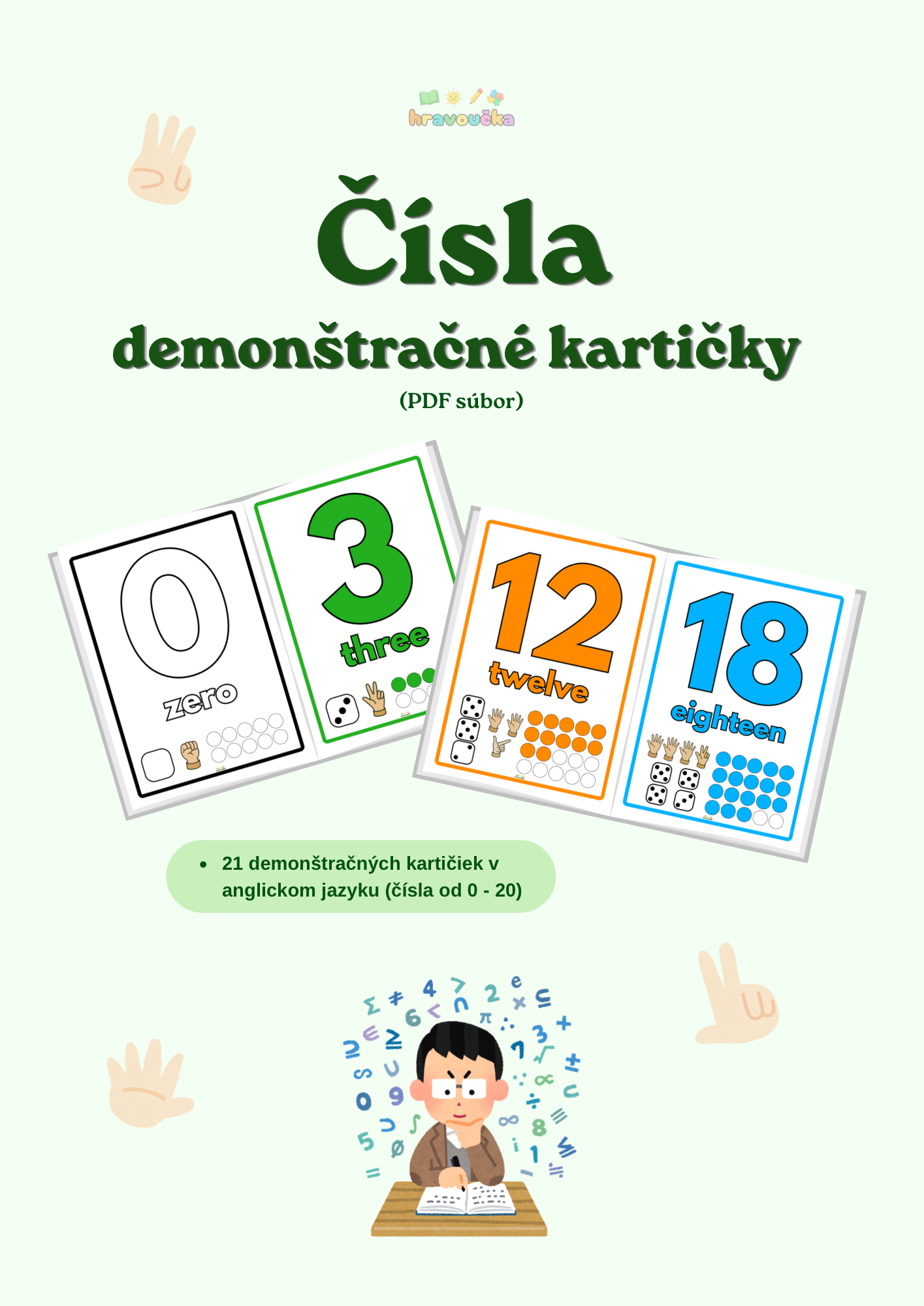 Súbor obsahuje 21 veľkých demonštračných kariet s číslami od 0 do 20 v anglickom jazyku.