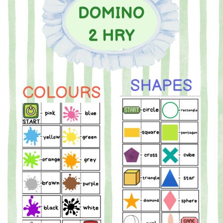 Hra domino je vhodná pre žiakov na prvom stupni ZŠ, ktorí si chcú hravou formou precvičiť farby a tvary v anglickom jazyku. Úlohou žiaka je správne poskladať jednotlivé dieliky domina tak, aby na seba nadväzovali a je vhodná aj na prácu vo dvojici alebo v skupinke.