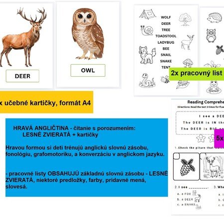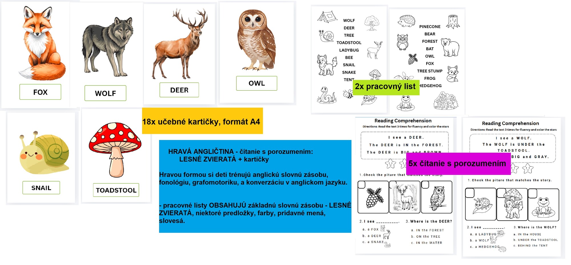 Hravá angličtina - čítanie s porozumením - LESNÉ ZVIERATÁ + kartičky