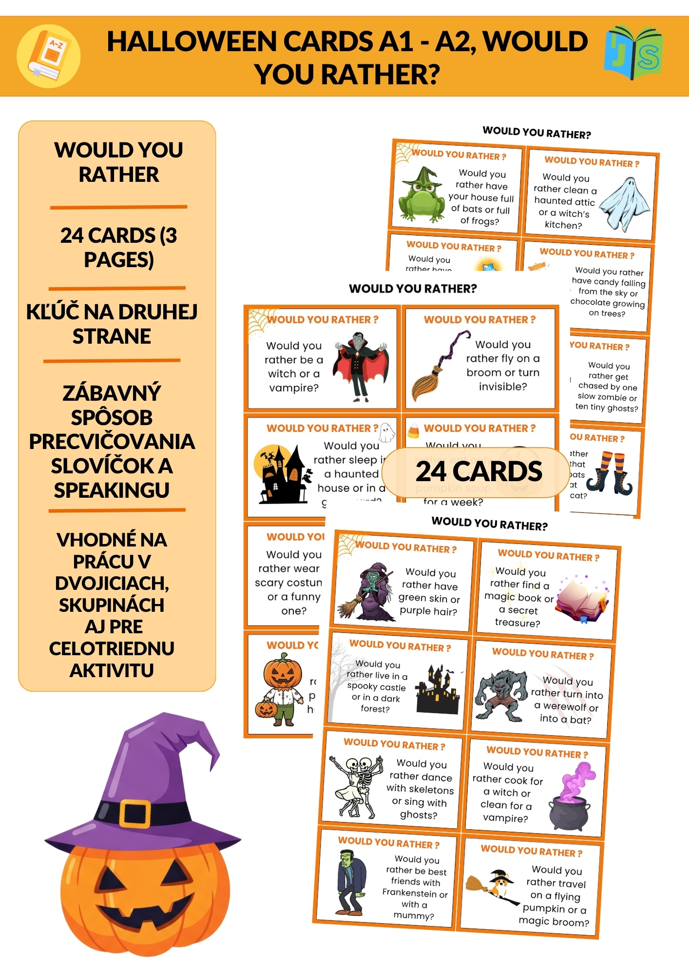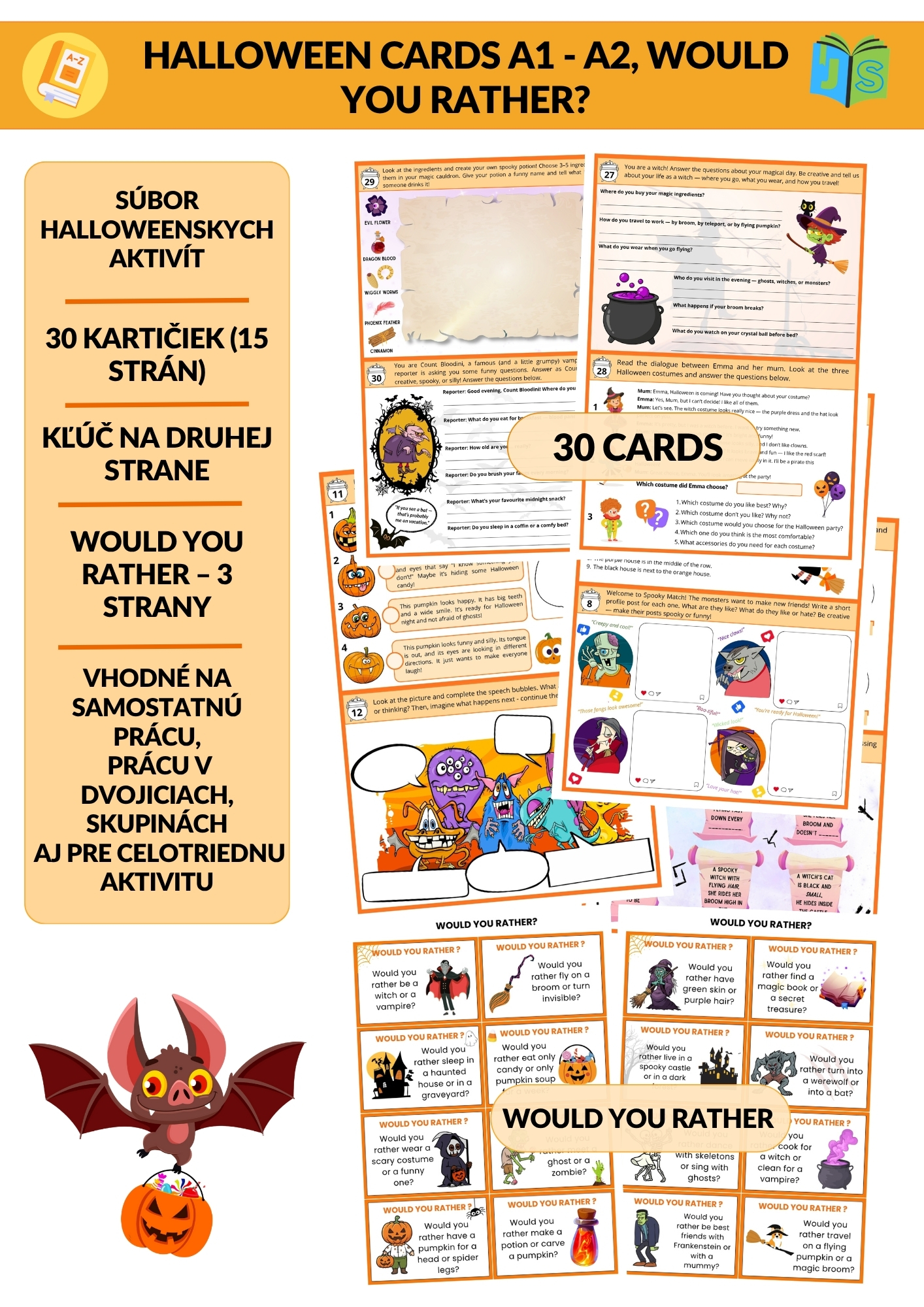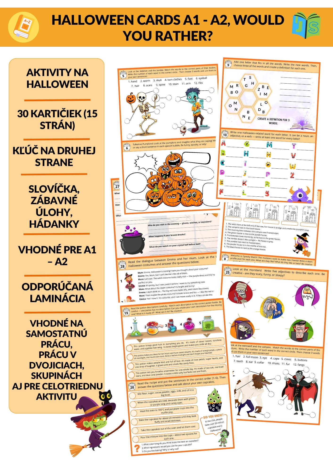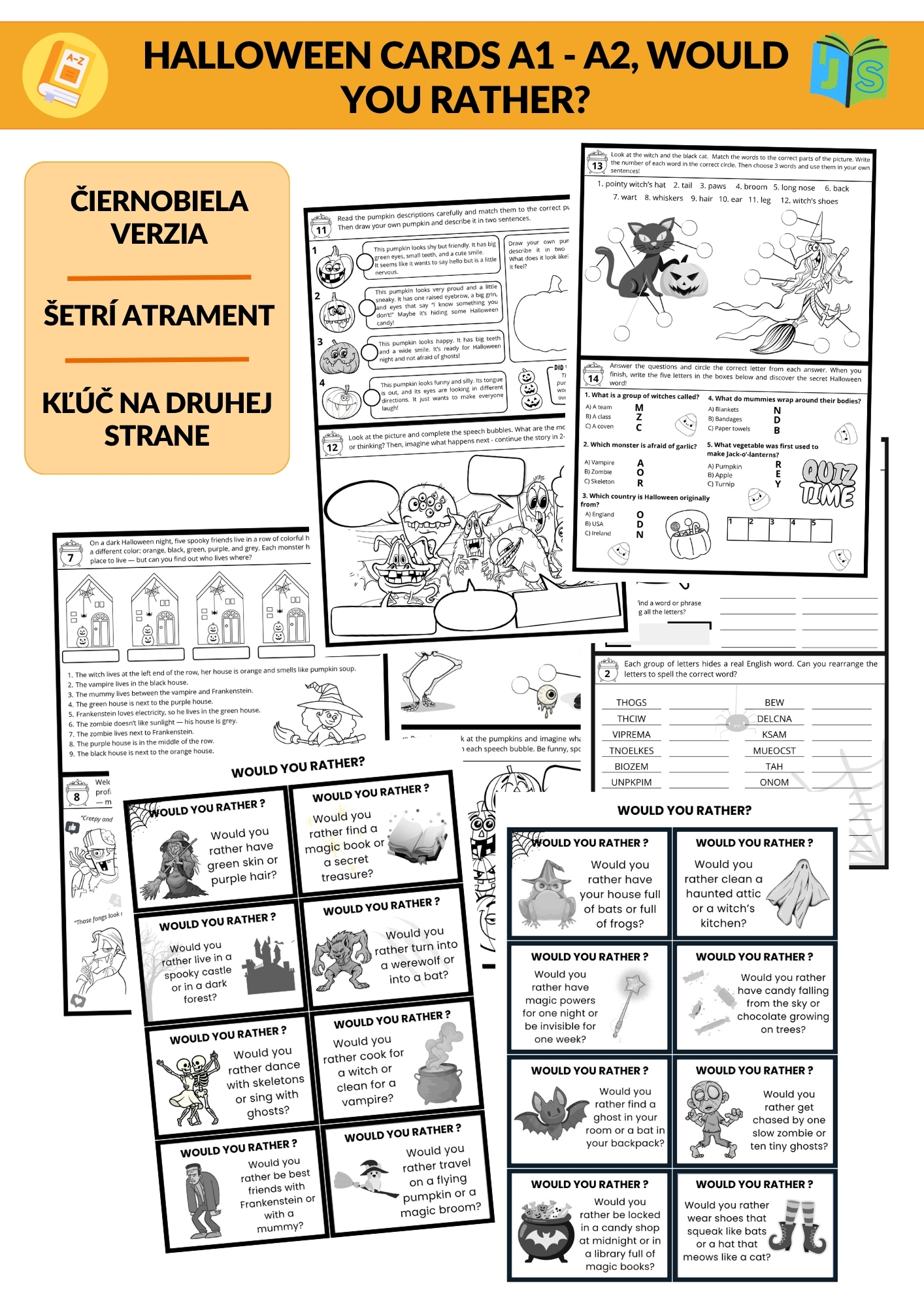 Žiaci budú opisovať príšery, odpovedať na vtipné otázky typu „Would You Rather?“, riešiť zaujímavé úlohy a plniť kreatívne halloweenske aktivity.