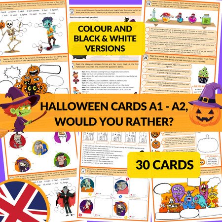 Tento materiál je ideálny pre októbrové hodiny angličtiny alebo halloweenske dni. Stačí ho vytlačiť, zalaminovať a nechať žiakov užiť si strašidelnú angličtinu!