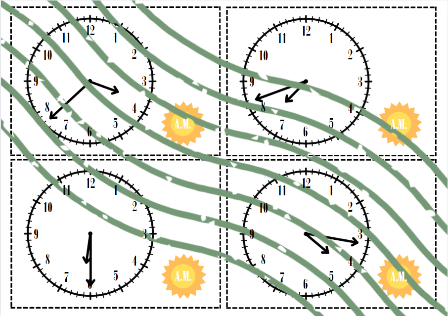 Materiál obsahuje aj dva súbory na určovanie času - na obrázku sú ciferníky a žiaci majú určiť digitálny čas, prípadne prečítať, koľko je hodín. Kartičky môžete buď zalaminovať alebo im vytlačiť viacero kariet na jednu stranu. Mesiac predstavuje čas od obeda do polnoci, slnko predstavuje čas od polnoci do obeda. Súbor Aký je čas 2 vhodný aj na anglický jazyk.