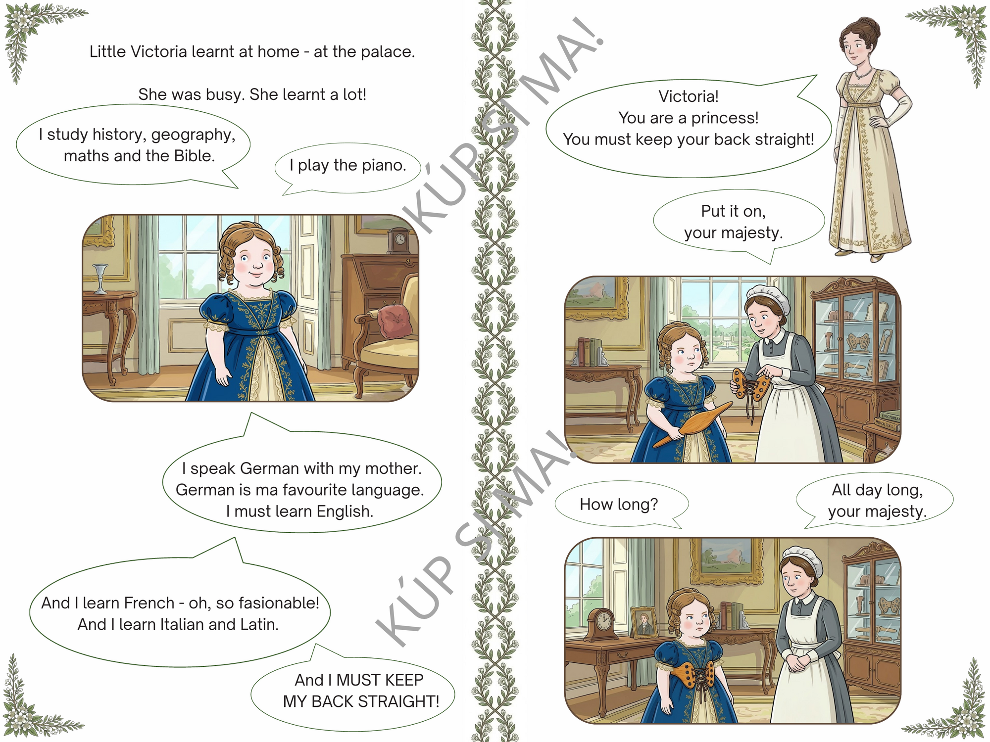- Ilustrovanú knižôčku Queen Victoria (7 strán formátu A4), ktorá kombinuje fakty s vizuálnym rozprávaním.