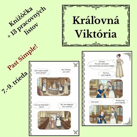Príbeh kráľovnej Viktórie ožíva vďaka pútavej kombinácii jednoduchého textu a komiksových prvkov. Knižôčka je napísaná sviežou, zrozumiteľnou angličtinou (úroveň A2), ktorá neodradí ani slabších žiakov. Vďaka krátkym vetám a premyslenému opakovaniu slovnej zásoby je ideálnym nástrojom na prirodzené upevnenie minulého času (Past Simple) priamo v kontexte príbehu.