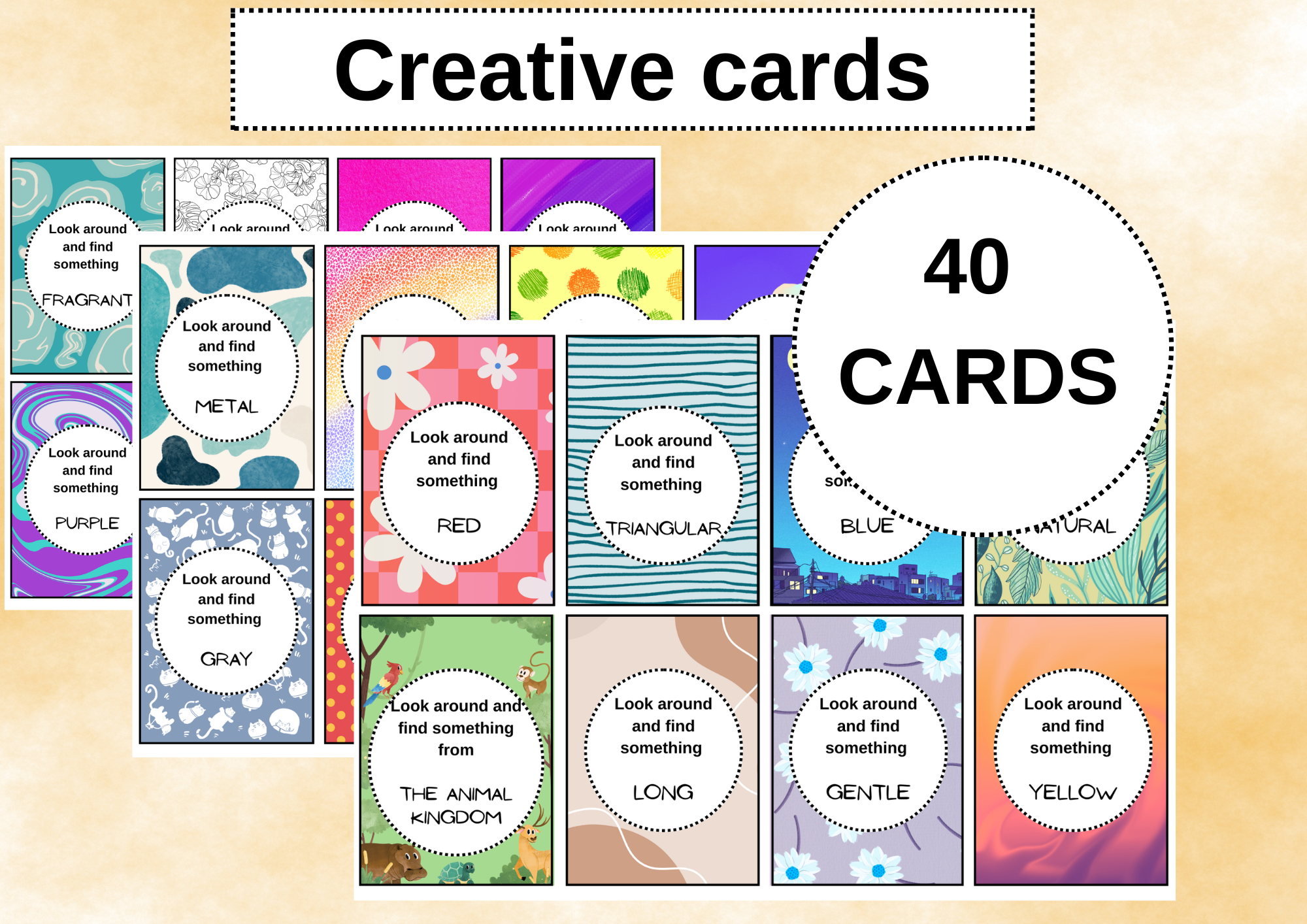 Kreatívne kartičky, ktoré deti môžu hrať v škole, na ihrisku, v lese a vo voľnej prírode. Deti sedia v kruhu a po jednom si z kôpky ťahajú kartičku.
