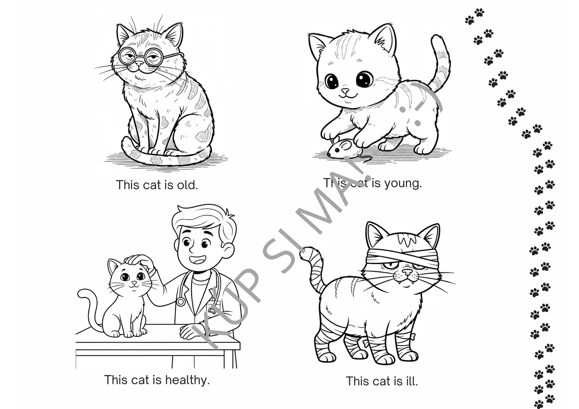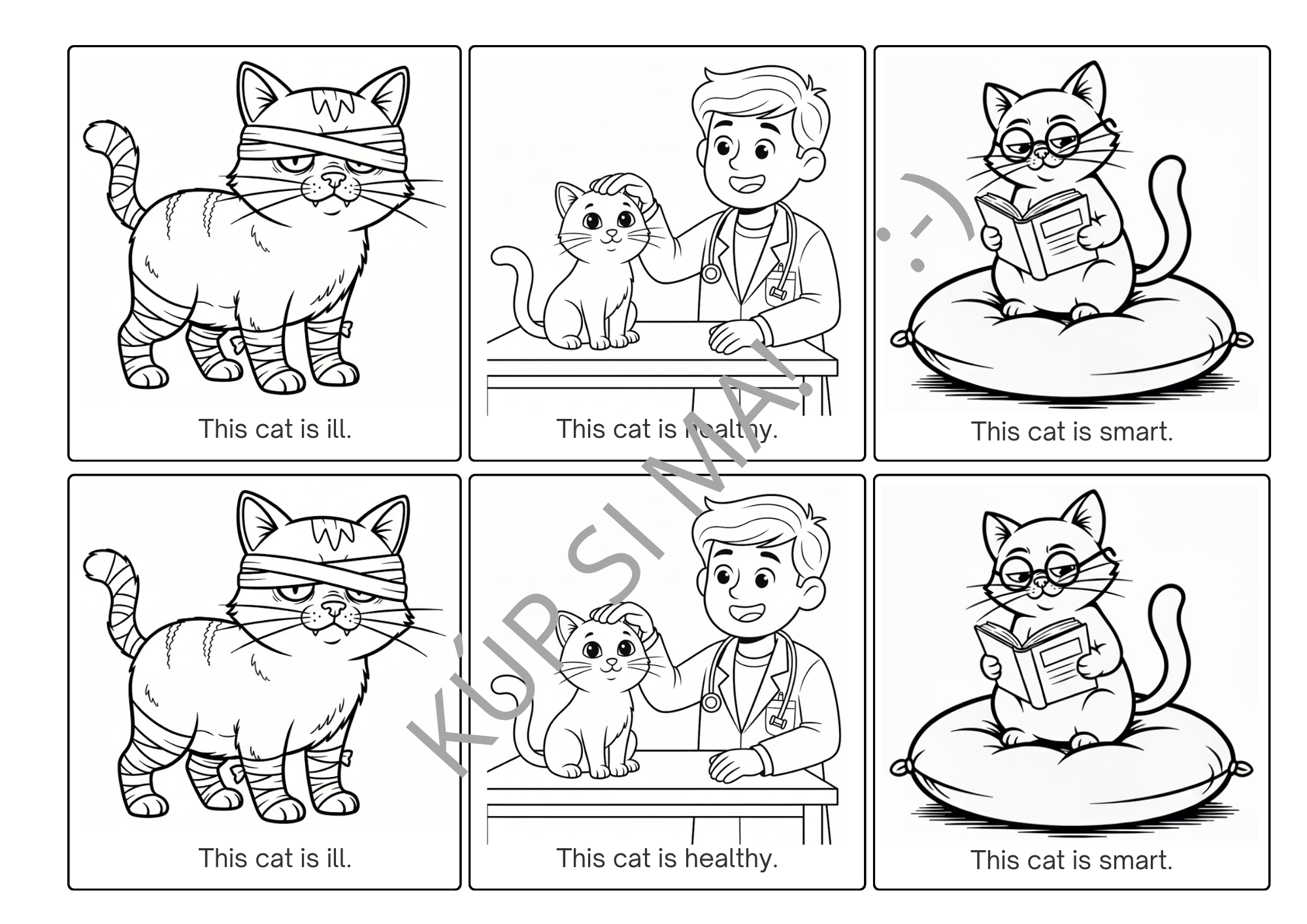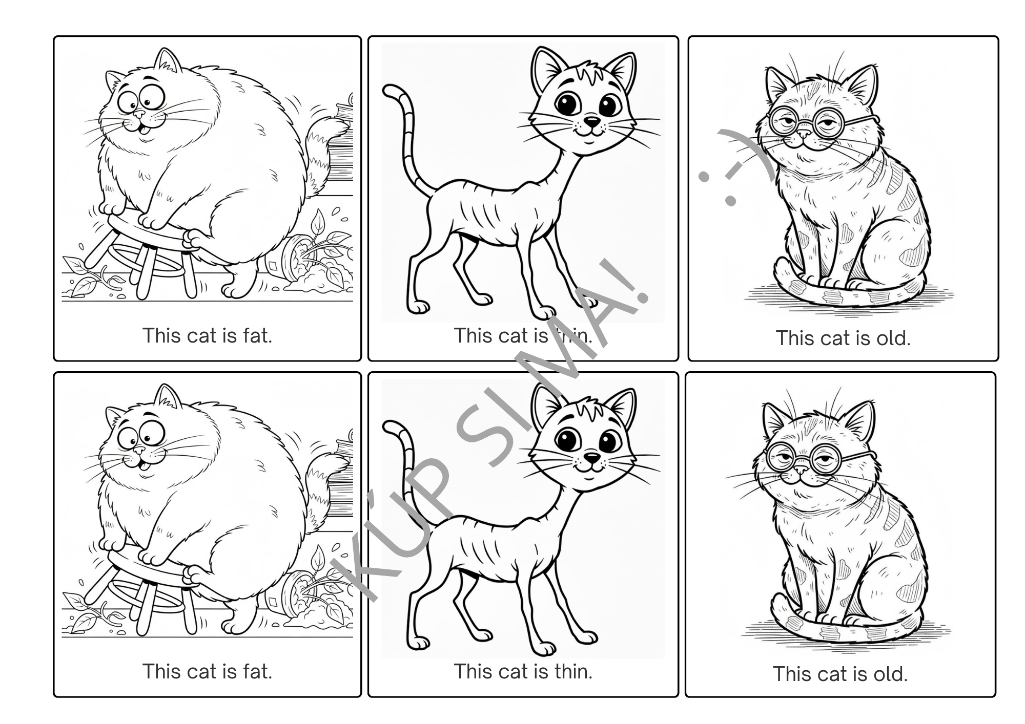 - Zameranie na základné sloveso: Deti si hravo upevnia väzbu „This cat is + prídavné meno“ (sloveso to be v 3. osobe j. č.).