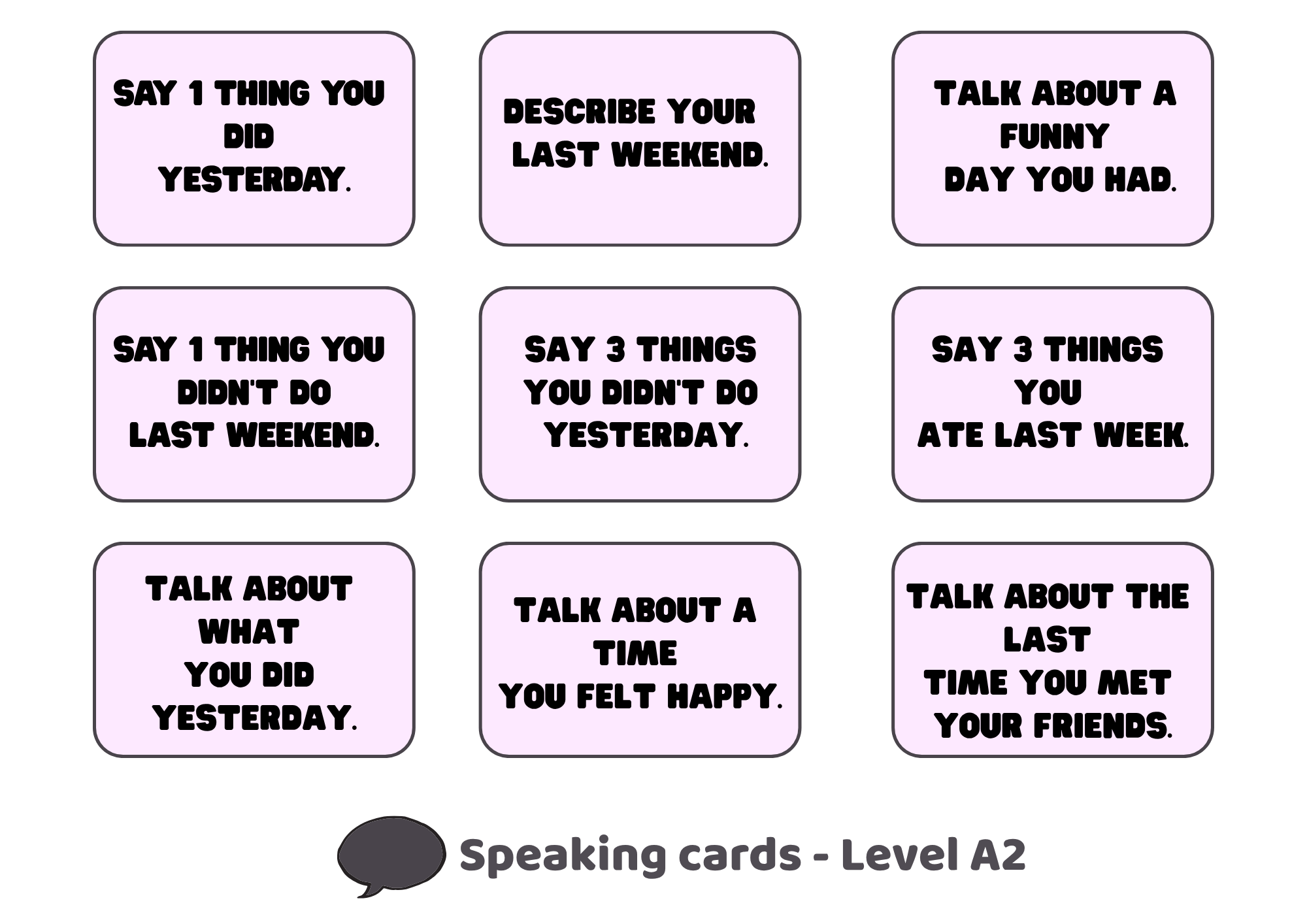 - 4 sady kariet: Speaking prompts / Question cards / Challenge cards / Free Talk