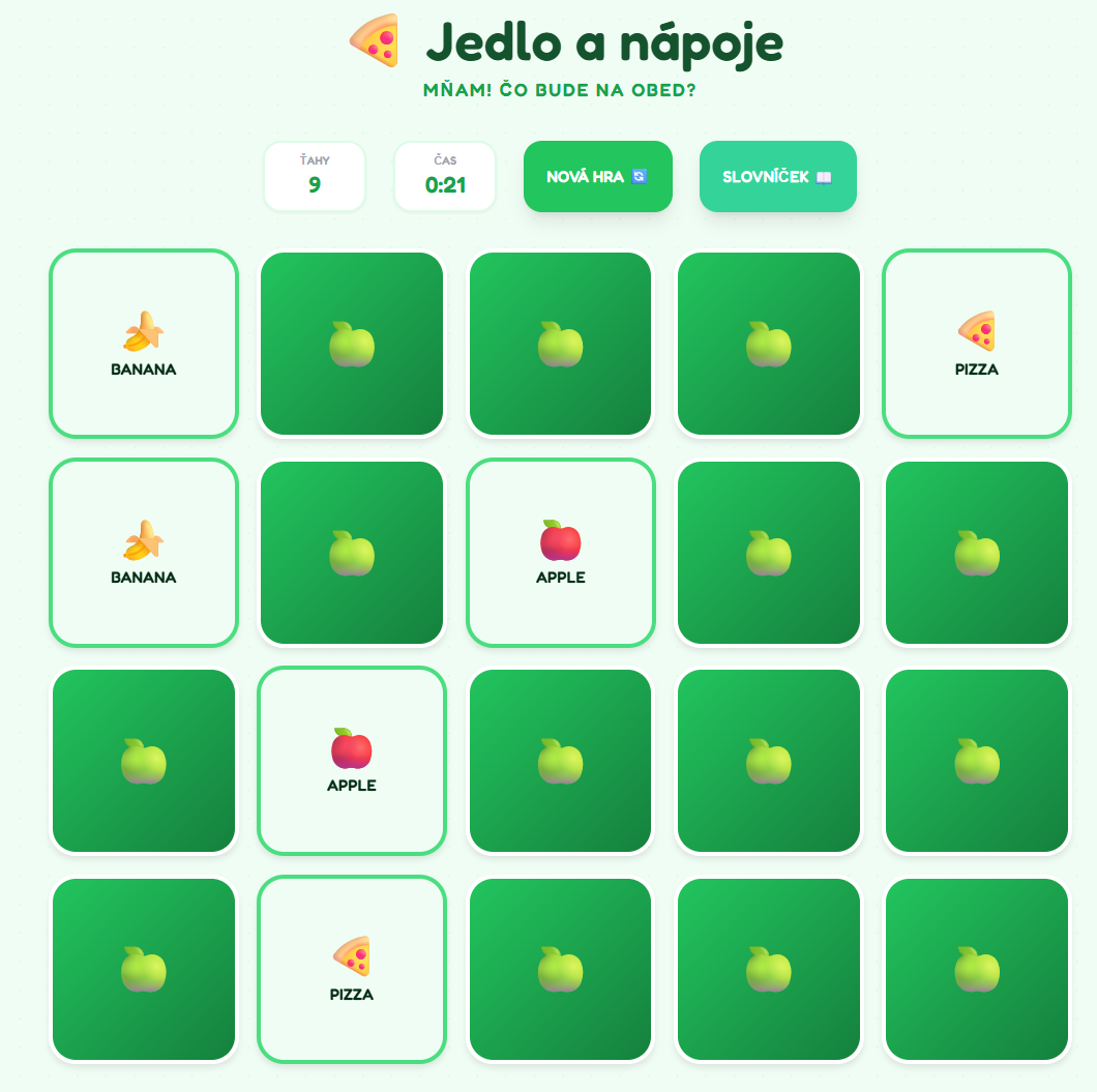 - Kompletná herná logika: Systém pri každom štarte vyberie 10 náhodných dvojíc, meria čas a počíta počet ťahov pre zvýšenie motivácie.