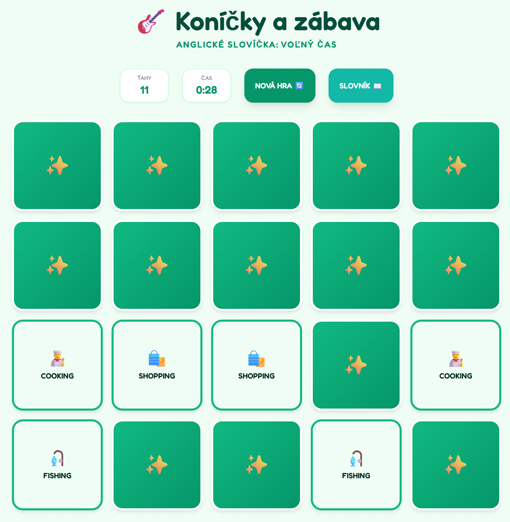 🎸 Hobbies & Fun – Interaktívne pexeso