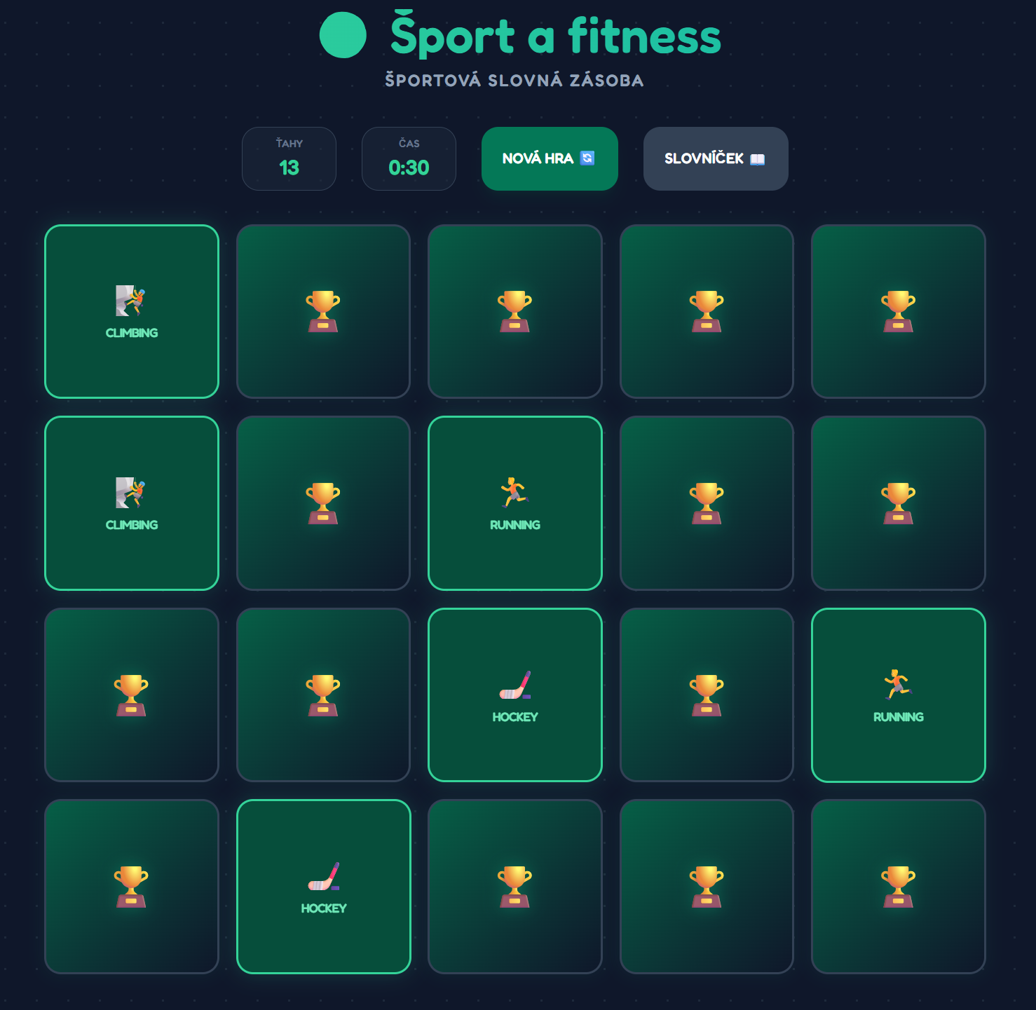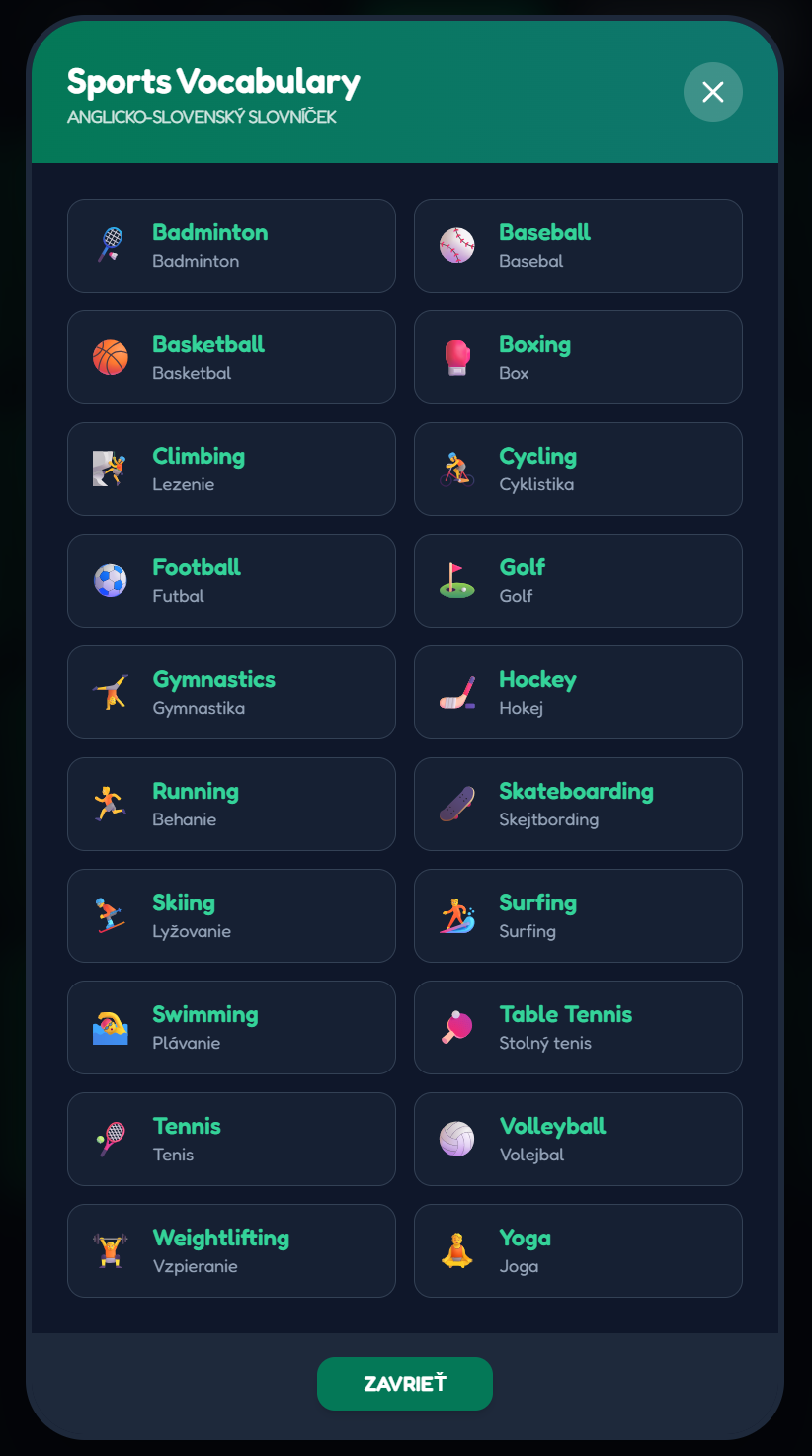 - Vizuálna spätná väzba: Okamžitá validácia správneho páru a interaktívny slovníček priamo v hre pre rýchlu kontrolu významu.