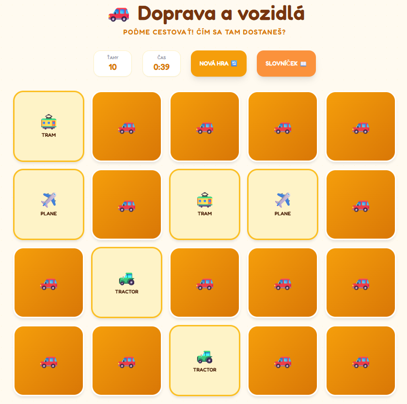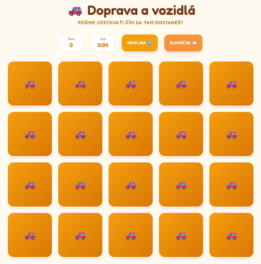 🚗 Pexeso: Doprava a vozidlá
