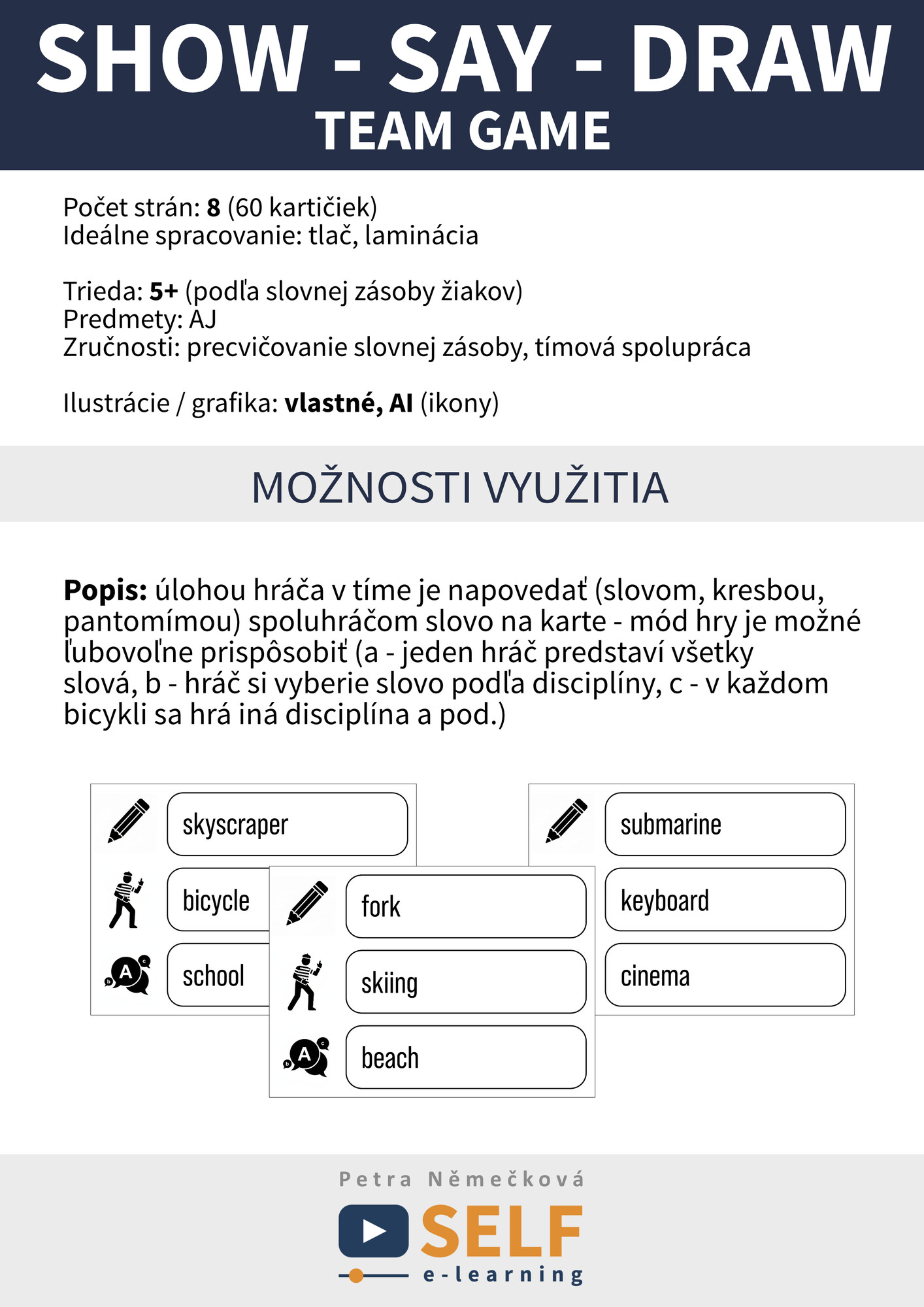 Sada: 60 kartičiek (na každé 3 slová)