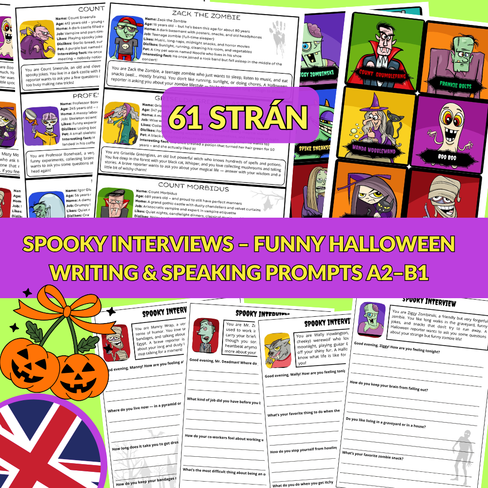 Vstúpte do sveta Halloweenu s originálnym materiálom Spooky Interviews – Funny Halloween Writing & Speaking (A2–B1)!