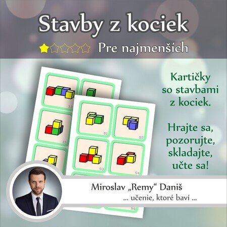 - jemnú motoriku, logické myslenie, pozornosť a trpezlivosť pri skladaní stavieb z kociek podľa predlohy
