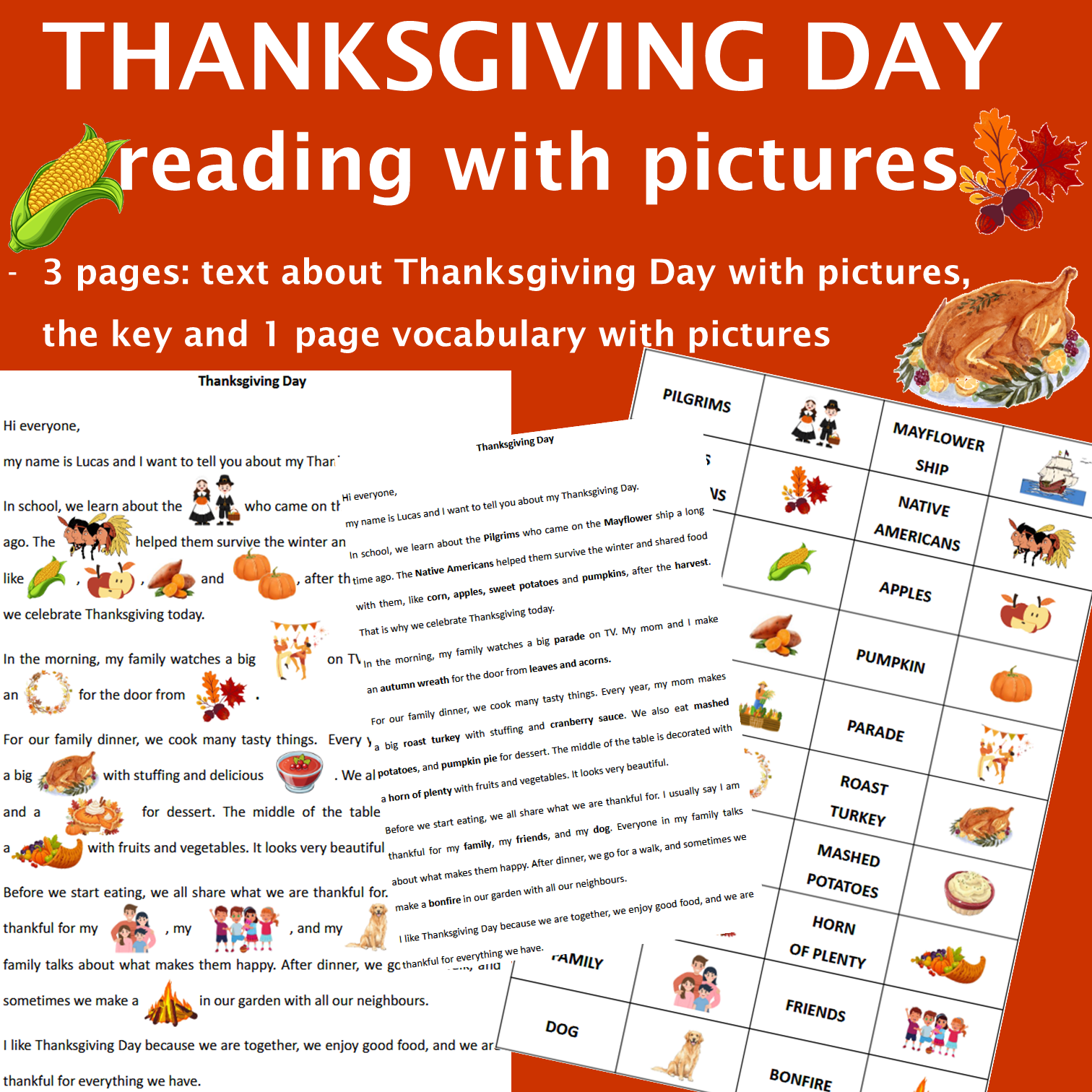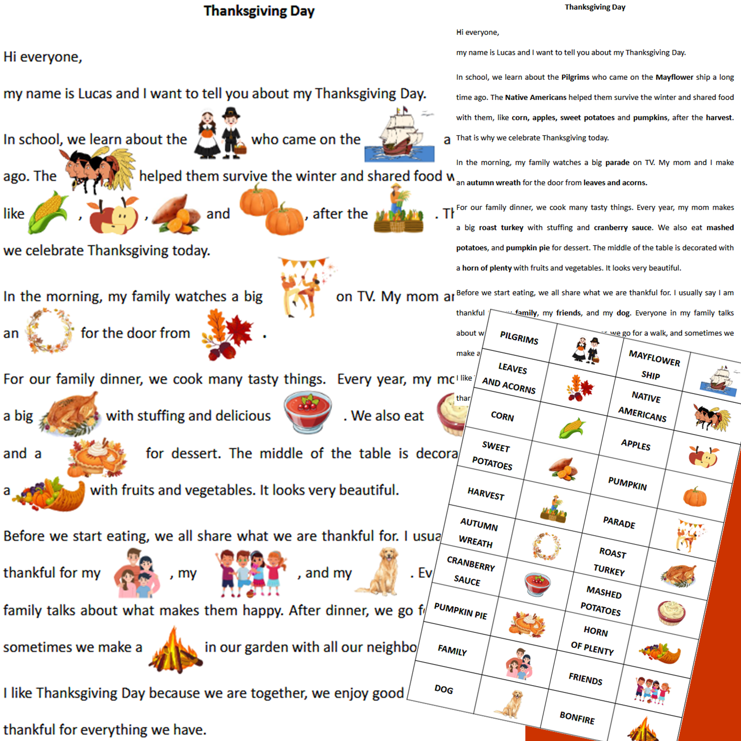 Thanksgiving Day reading comprehension A2: