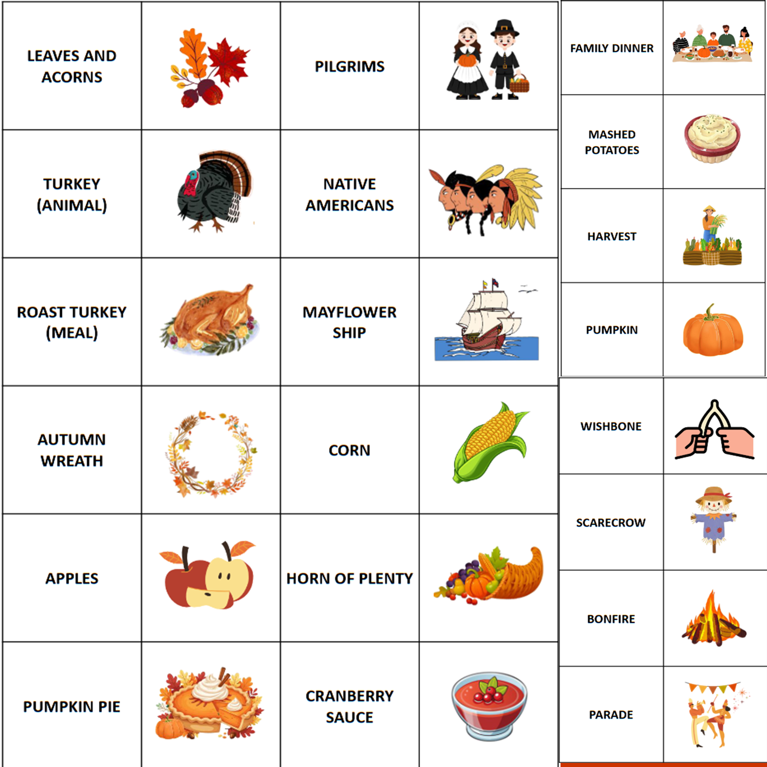 Thanksgiving Day bingo - Anglický jazyk | UčiteliaUčiteľom.sk
