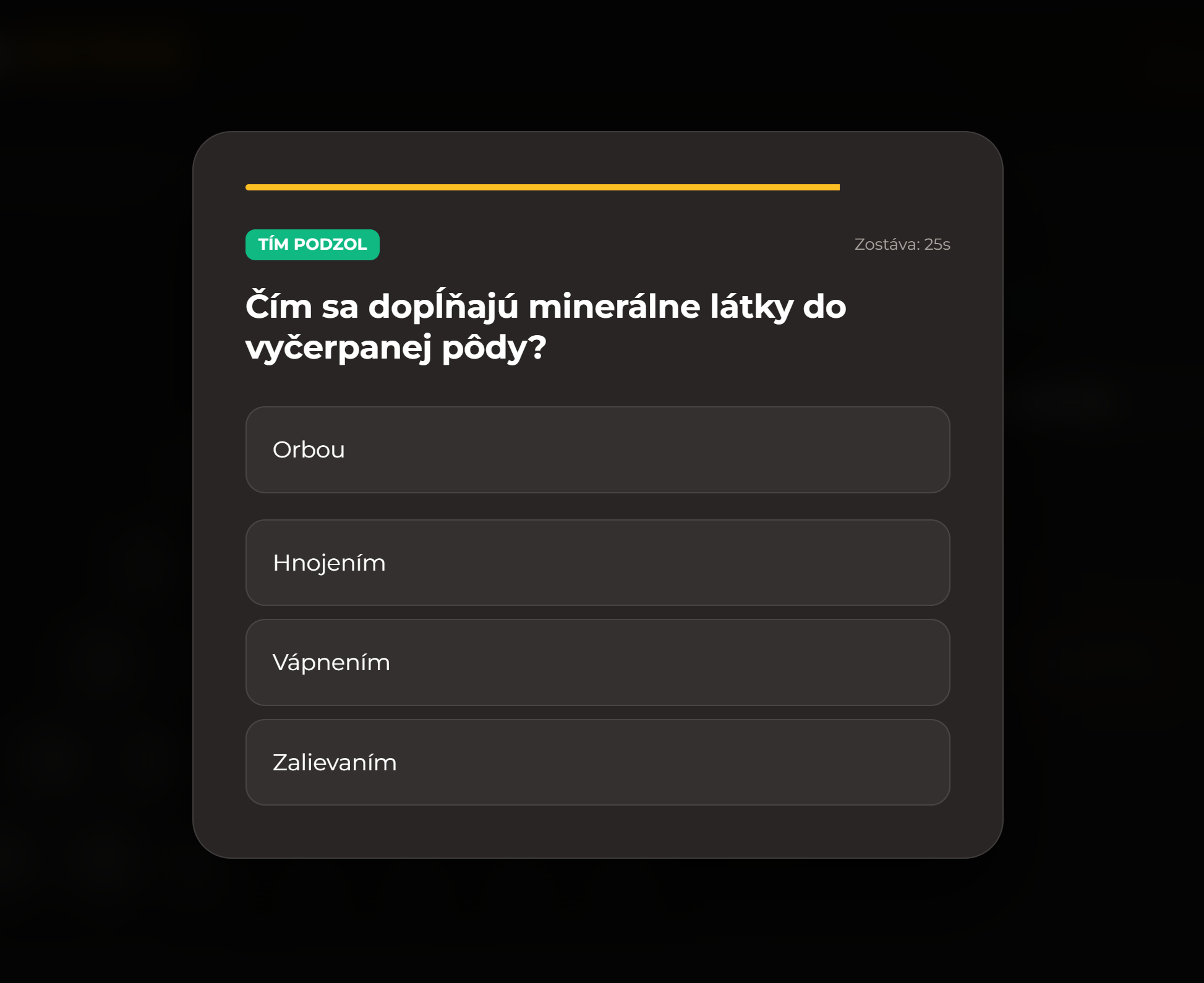 Ponúknite svojim žiakom atraktívne a moderné precvičovanie geografie! Táto interaktívna aplikácia prenáša obľúbenú televíznu súťaž priamo do vašej triedy. Žiaci sa hravou formou naučia všetko o pôdnom obale Zeme – od jeho zloženia až po ochranu pred eróziou.