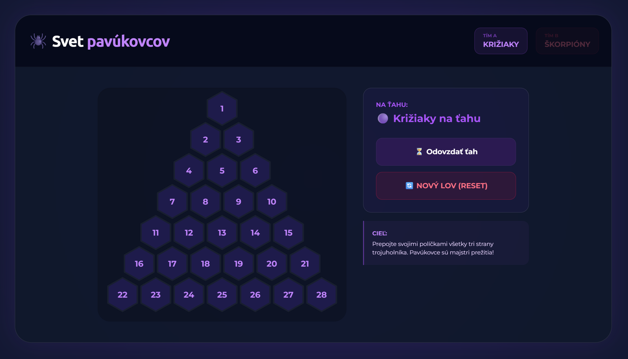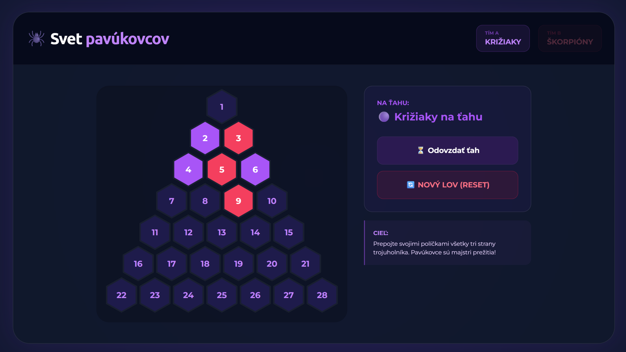 Premeňte hodinu biológie na napínavý súboj medzi Križiakmi a Škorpiónmi! Táto digitálna hra prenáša obľúbený formát AZ-kvízu priamo do vašej triedy. Žiaci sa hravou formou naučia všetko o stavbe tela, zástupcoch a zaujímavostiach zo sveta pavúkovcov.