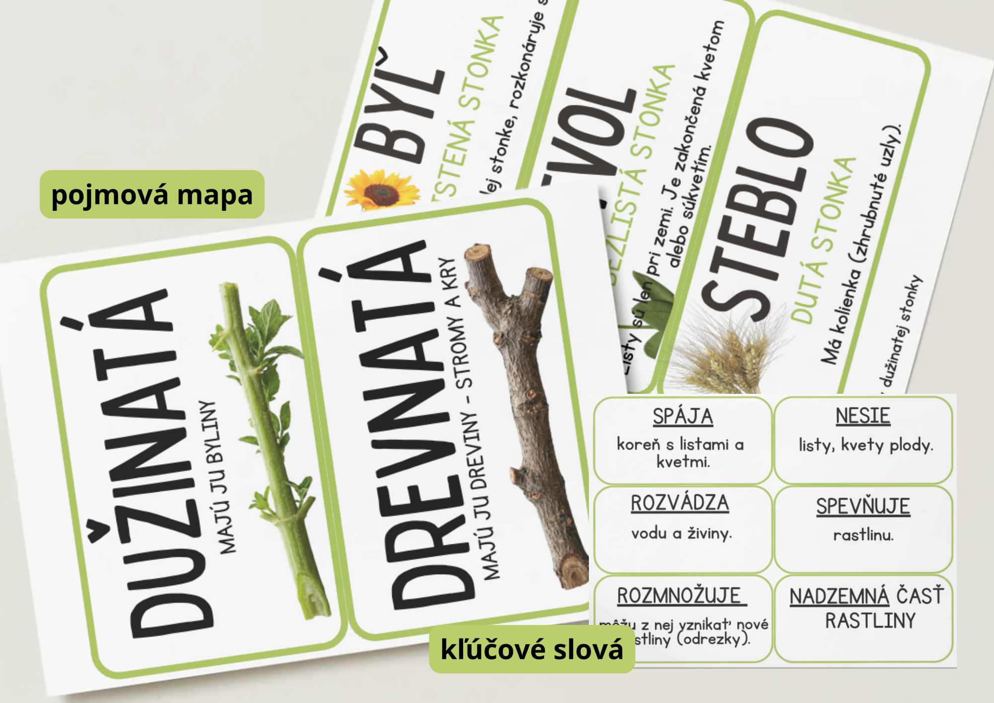 POJMOVÁ MAPA s obrázkovými kartami BYLÍN A DREVÍN