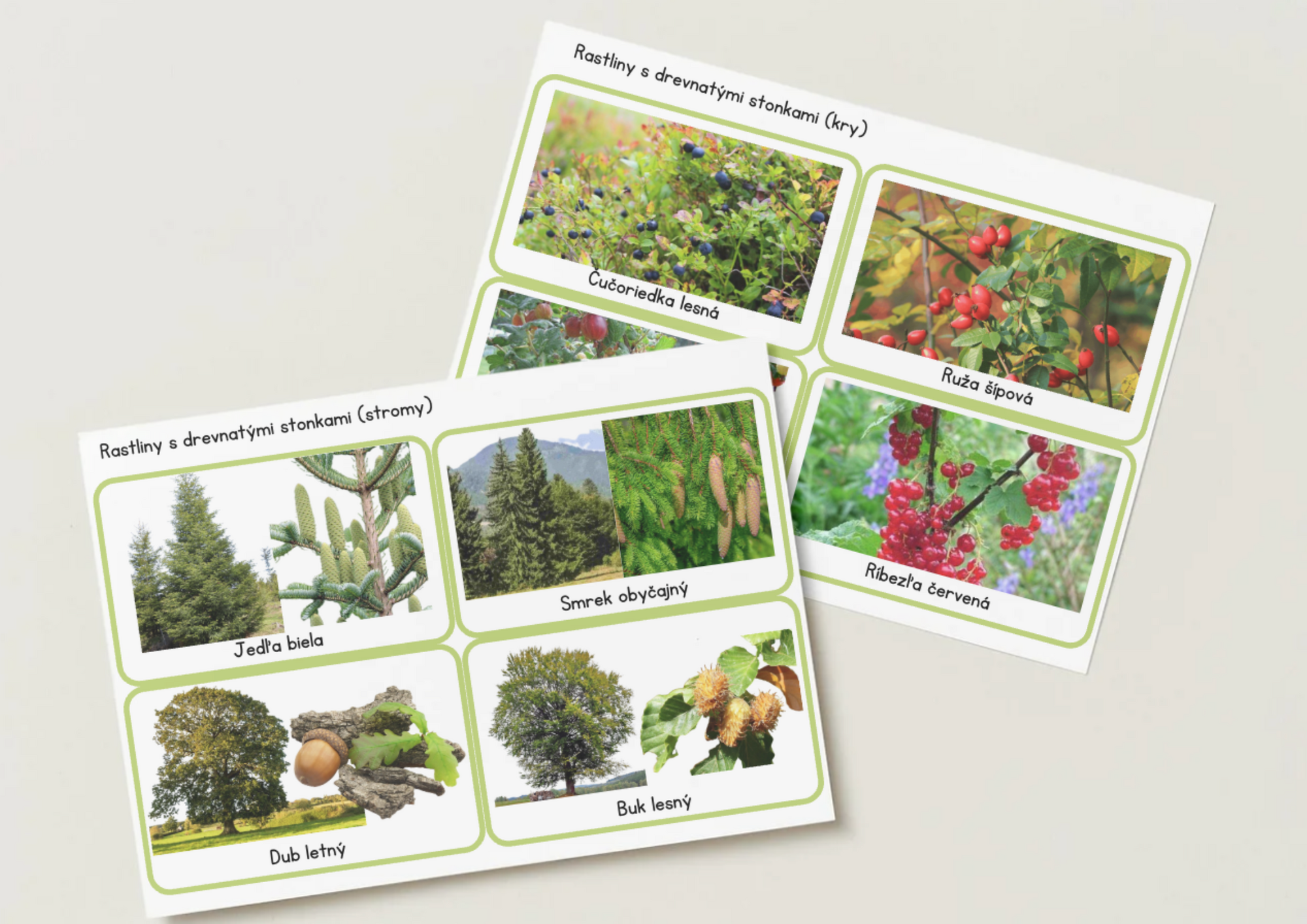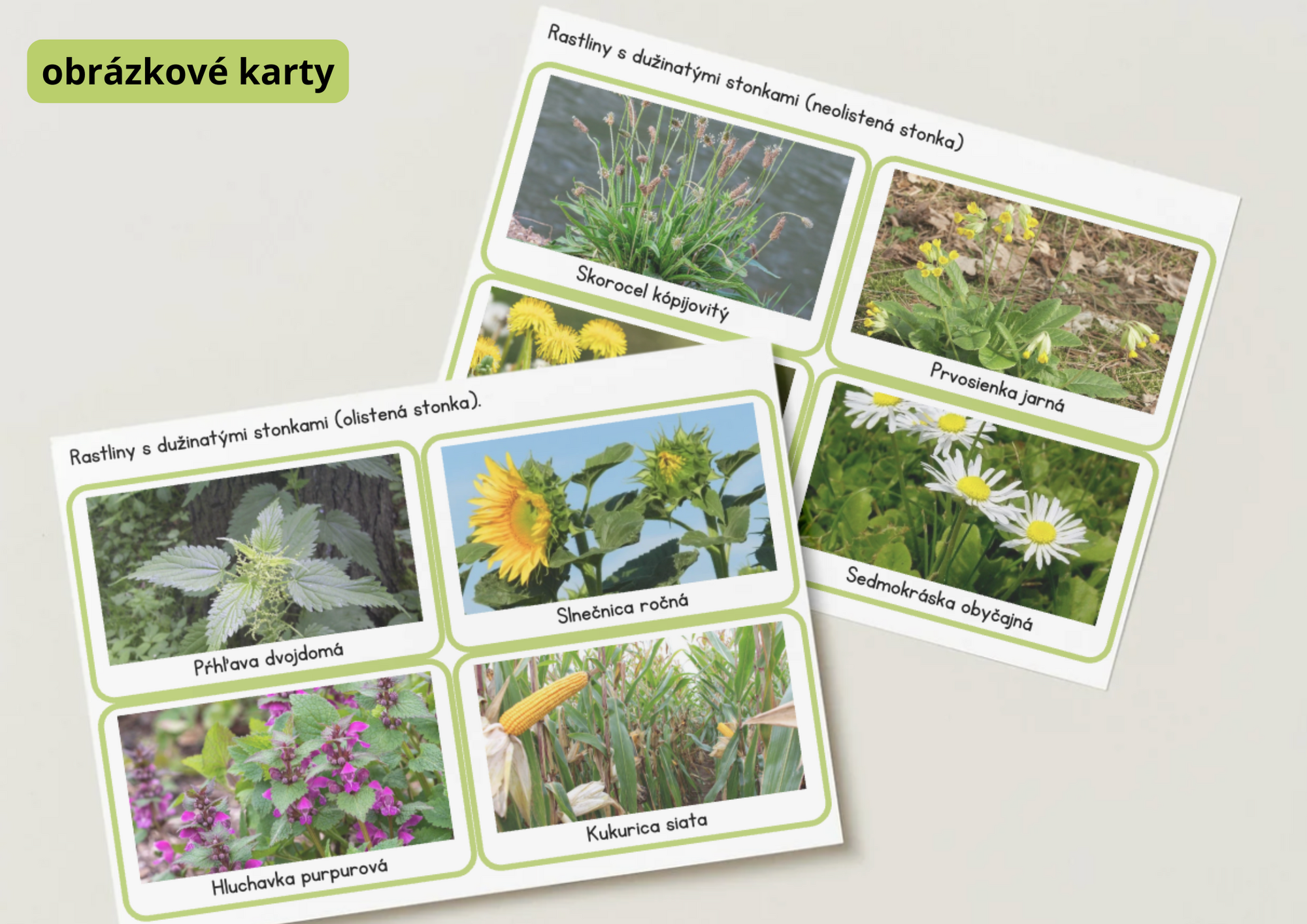 - Obrázkové realistické karty rastlín – priradenie k jednotlivým druhom stonky