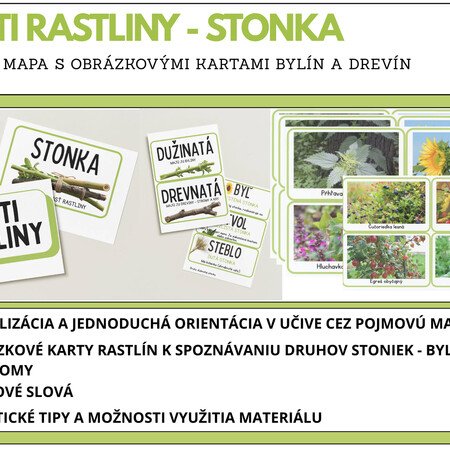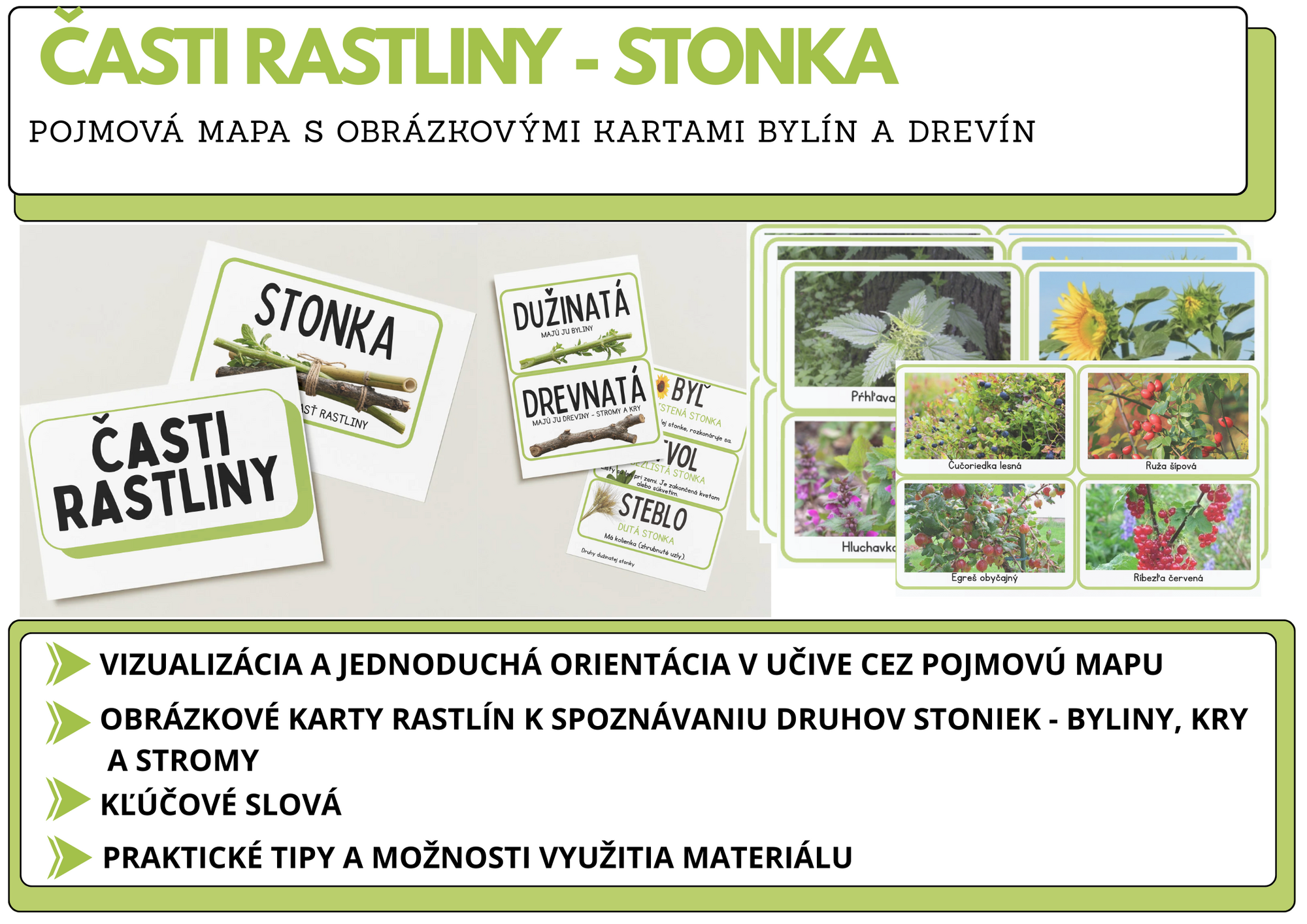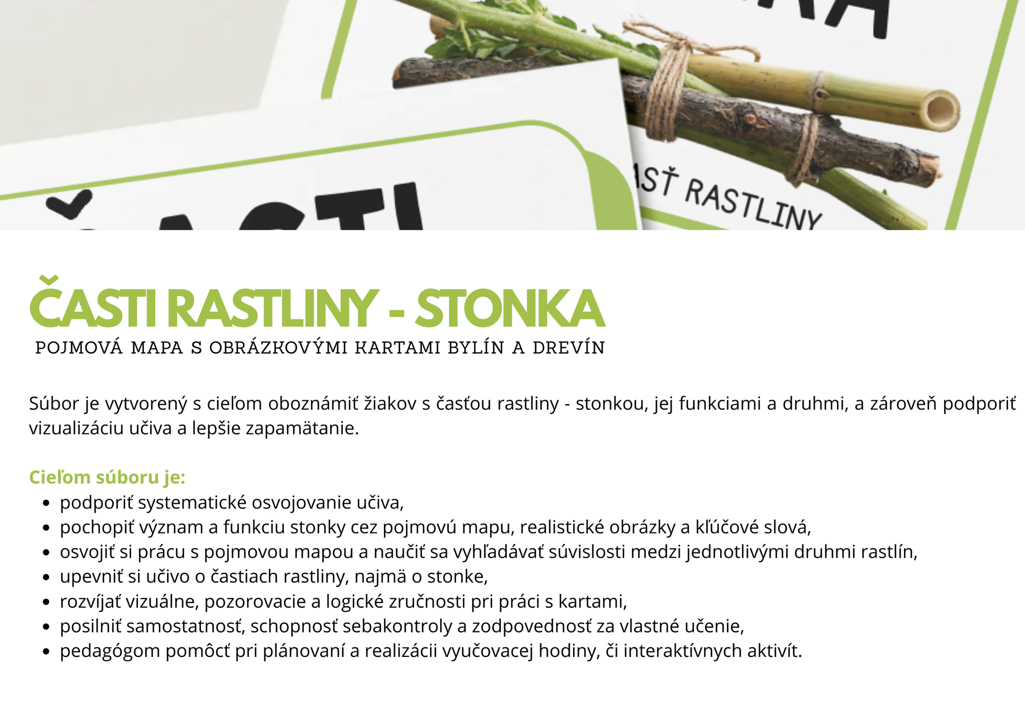 Súbor je vytvorený s cieľom oboznámiť žiakov s časťou rastliny - stonkou, jej funkciami a druhmi, a zároveň podporiť vizualizáciu učiva a lepšie zapamätanie.