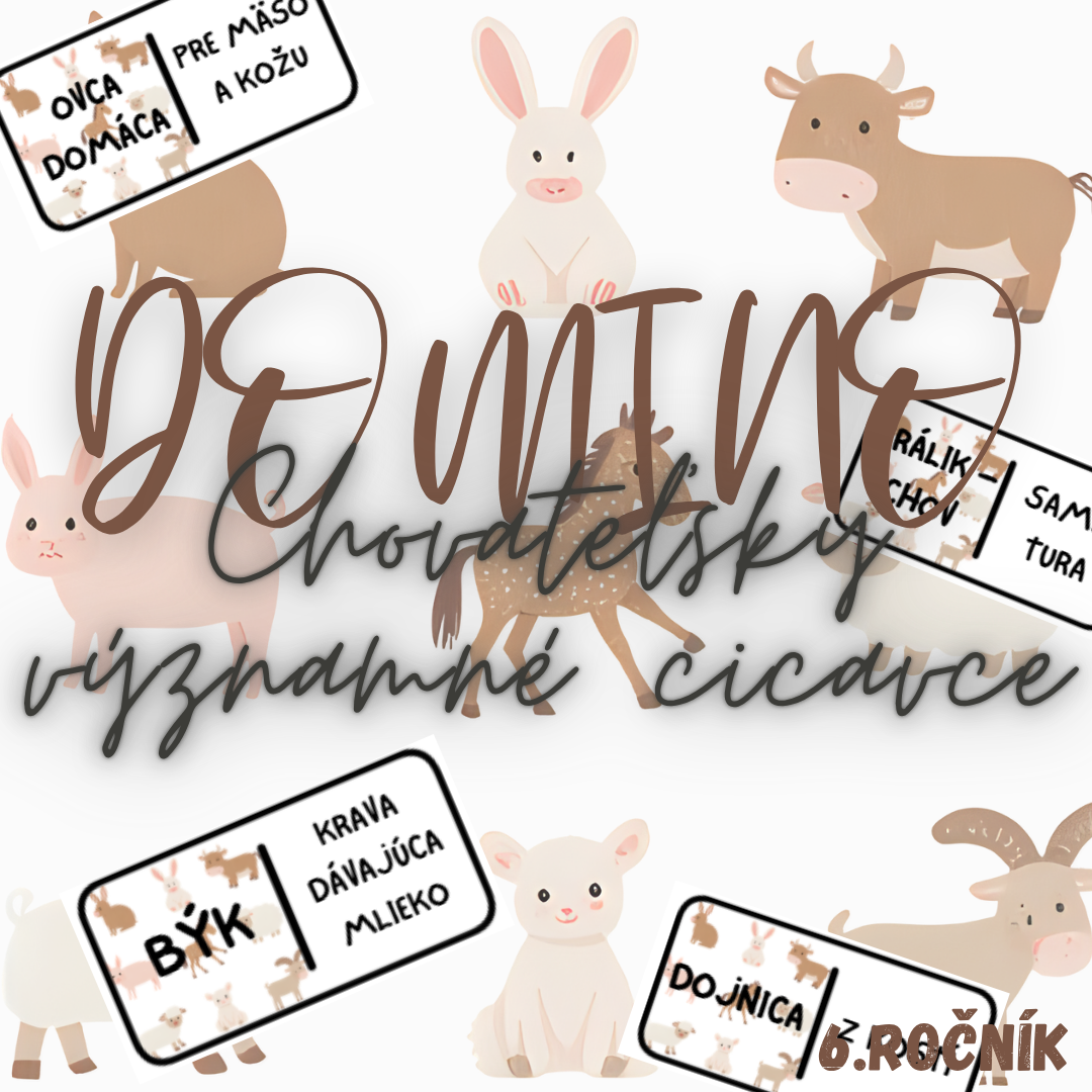 Materiál Domino – Chovateľsky významné cicavce je vzdelávacia a zábavná aktivita, ktorá pomáha žiakom hravou formou zopakovať a upevniť poznatky o cicavcoch chovaných človekom.
