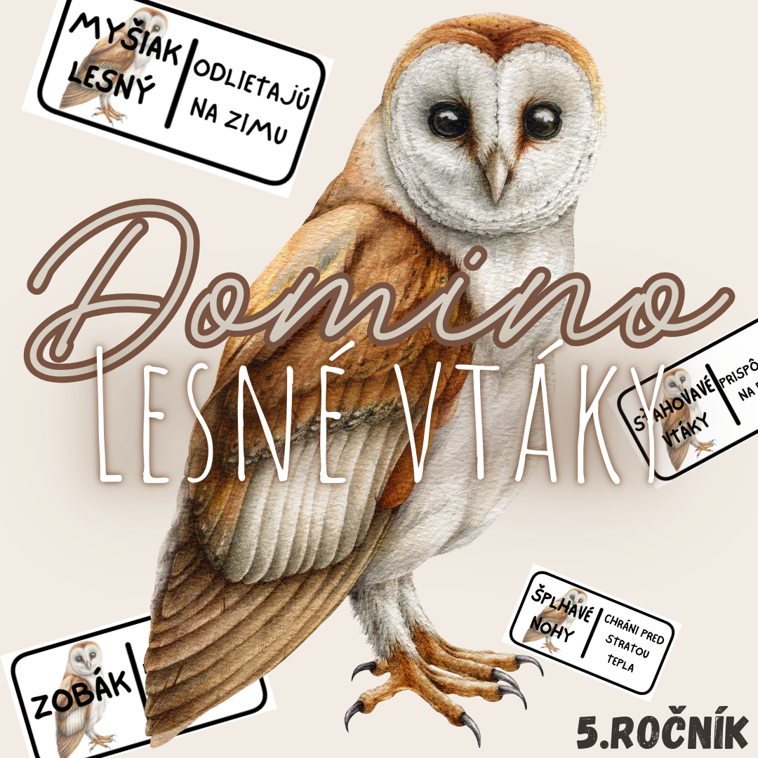 Materiál „Domino – Lesné vtáky“ je interaktívna edukačná hra určená pre žiakov 5. ročníka, ktorá hravou formou prepája poznatky o najčastejších druhoch vtákov našich lesov.