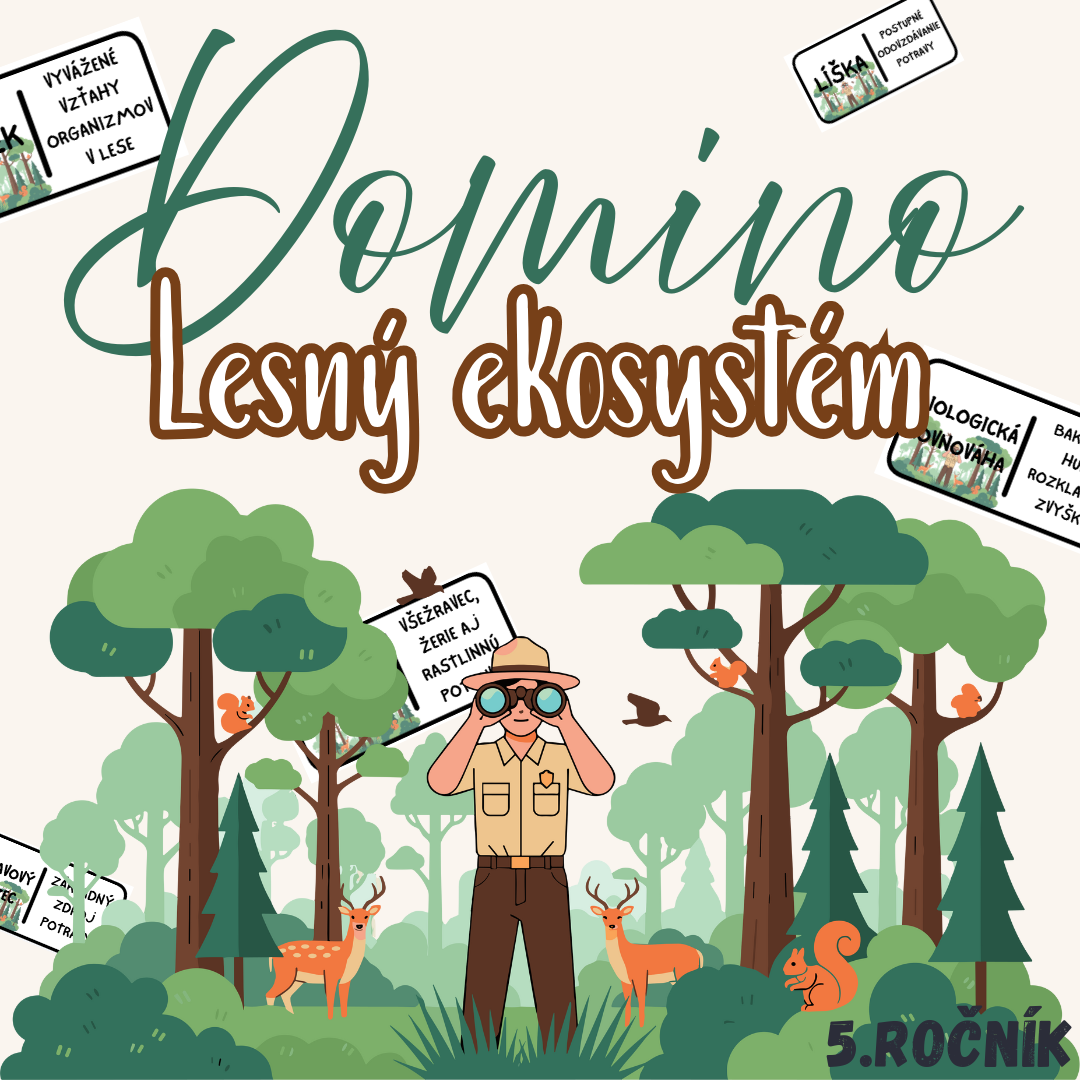Materiál „Domino – Lesný ekosystém“ je didaktická a hravá edukačná aktivita určená pre žiakov 5. ročníka základnej školy na hodiny biológie. Prostredníctvom práce s domino kartičkami si žiaci upevňujú poznatky o lese ako prírodnom ekosystéme, jeho zložkách a vzťahoch medzi živými a neživými súčasťami prostredia.