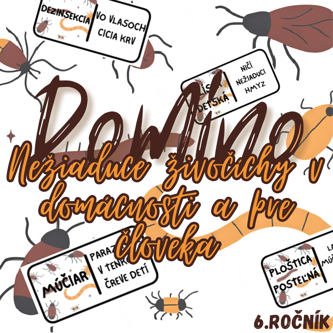 Materiál Domino – Nežiaduce živočíchy v domácnosti a pre človeka je zábavná a vzdelávacia aktivita, ktorá pomáha žiakom spoznať živočíchy, ktoré môžu škodiť zdraviu, potravinám alebo majetku človeka, a zároveň si vysvetliť zásady ochrany a prevencie.