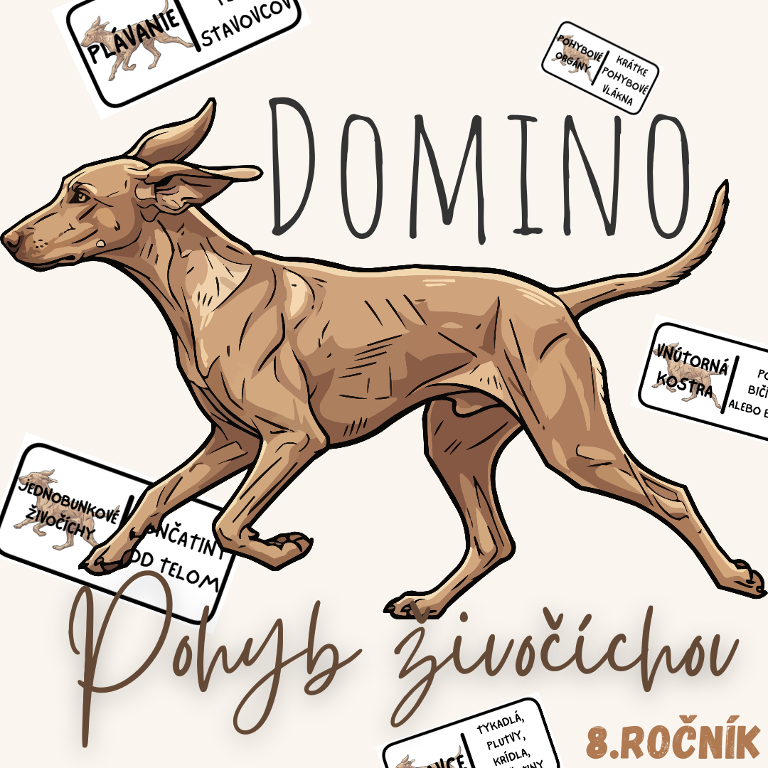 Materiál „Domino – Pohyb živočíchov“ je didaktická a názorná edukačná aktivita určená pre žiakov 8. ročníka základnej školy na hodiny biológie. Aktivita je spracovaná k téme pohyb živočíchov a pomáha žiakom pochopiť rôzne spôsoby pohybu v závislosti od prostredia a stavby tela organizmov.