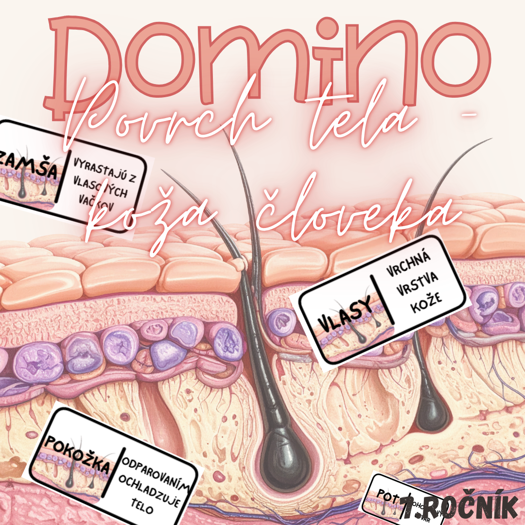 Materiál „Domino – Povrch tela: koža človeka“ je interaktívna edukačná hra určená pre žiakov 7. ročníka, ktorá hravou formou prepája poznatky o stavbe, funkciách a význame kože.