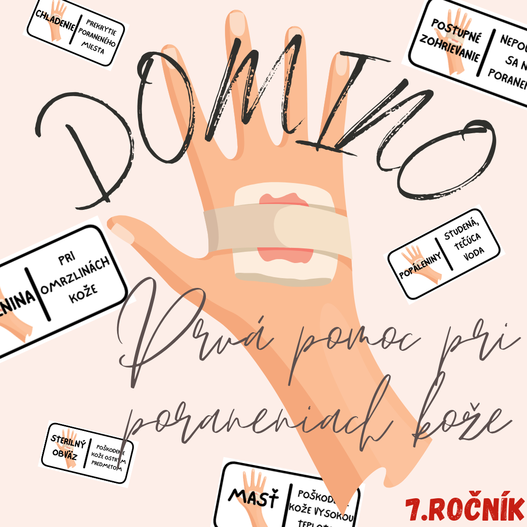 Materiál „Domino – Prvá pomoc pri poraneniach kože“ je didaktická a prakticky zameraná edukačná aktivita určená pre žiakov 7. ročníka základnej školy. Prostredníctvom práce s domino kartičkami si žiaci upevňujú základné poznatky o poskytovaní prvej pomoci pri poraneniach kože a o správnych postupoch pri drobných úrazoch.