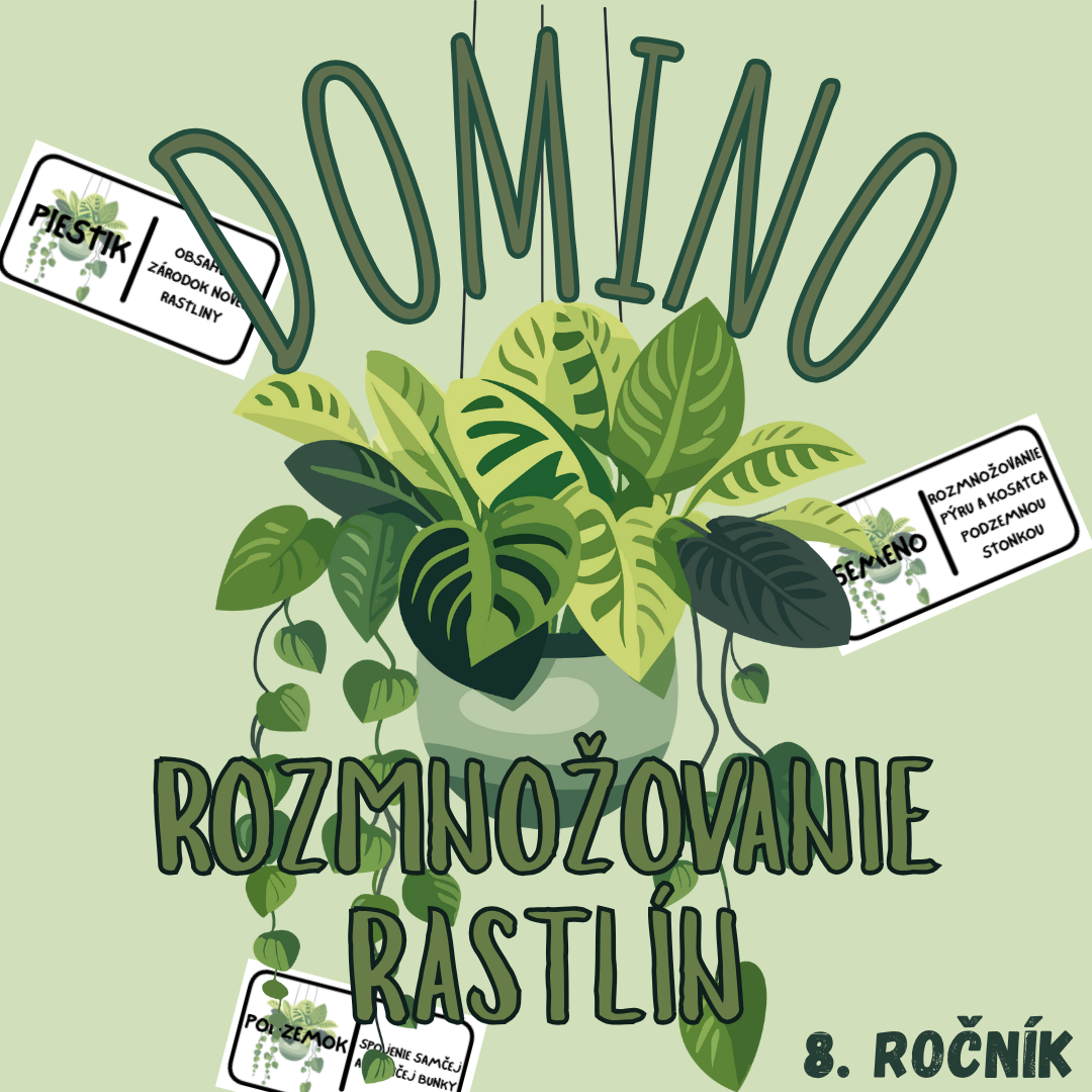 Materiál Domino – Rozmnožovanie rastlín je interaktívna a hravá aktivita, ktorá pomáha žiakom 8. ročníka základnej školy zopakovať a upevniť učivo o pohlavnom a nepohlavnom rozmnožovaní rastlín, o stavbe kvetu, opeľovaní, oplodnení a šírení semien.