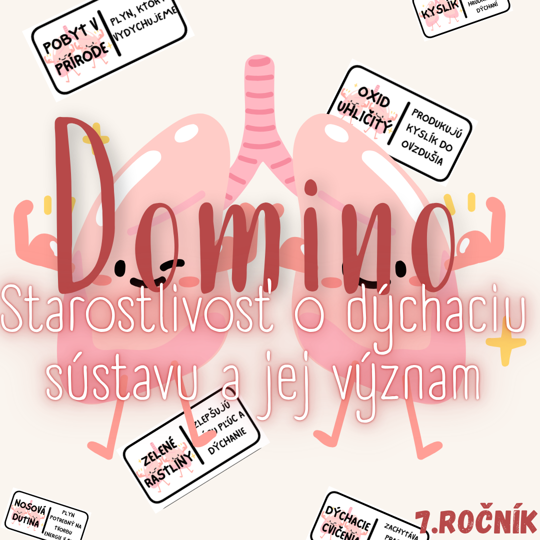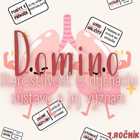 Materiál „Domino – Starostlivosť o dýchaciu sústavu a jej význam“ je didaktická a preventívne zameraná edukačná aktivita určená pre žiakov 7. ročníka základnej školy na hodiny biológie. Tematicky sa venuje zásadám správneho dýchania, ochrane dýchacej sústavy a významu prevencie.