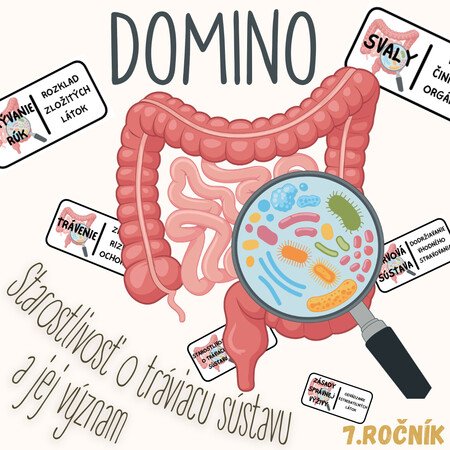 Materiál „Domino – Starostlivosť o tráviacu sústavu a jej význam“ je didaktická a názorná edukačná aktivita určená pre žiakov 7. ročníka základnej školy na hodiny biológie. Aktivita je spracovaná k téme význam tráviacej sústavy a zásady starostlivosti o ňu a pomáha žiakom pochopiť, ako správne návyky ovplyvňujú zdravie organizmu.