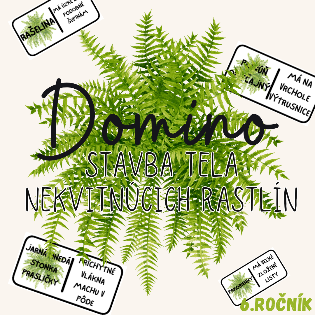 Prostredníctvom práce s domino kartičkami si žiaci upevňujú poznatky o skupinách nekvitnúcich rastlín (napr. riasy, machorasty, papraďorasty), o stavbe ich tela a o rozmnožovaní pomocou výtrusov. Učia sa prepájať pojmy s ich charakteristikami a chápať súvislosti medzi stavbou tela a životným prostredím.
