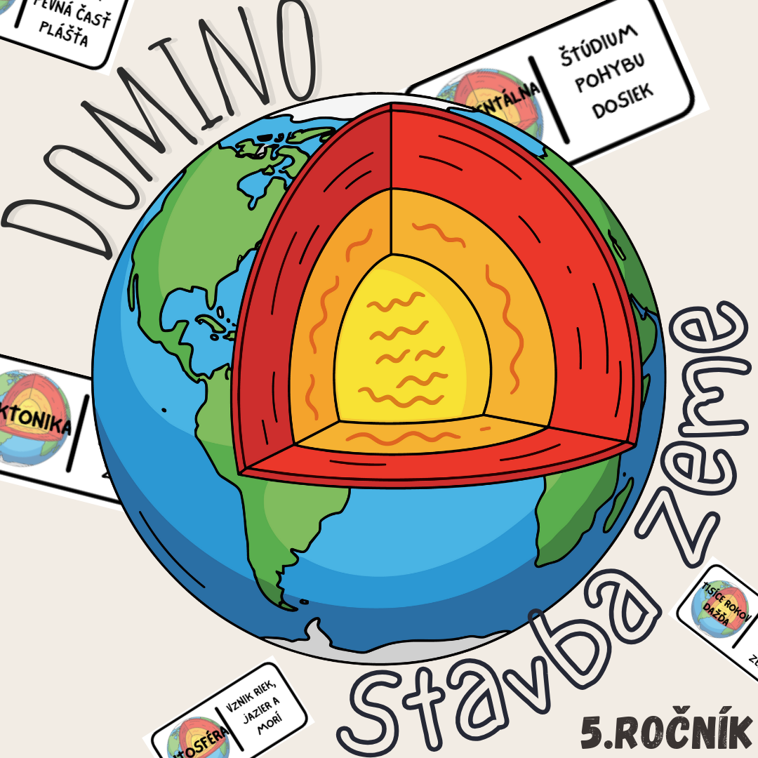 Materiál „Domino – Stavba Zeme“ je interaktívna edukačná hra určená pre žiakov 5. ročníka, ktorá zábavným spôsobom vysvetľuje základnú stavbu Zeme a jednoduché geologické javy.
