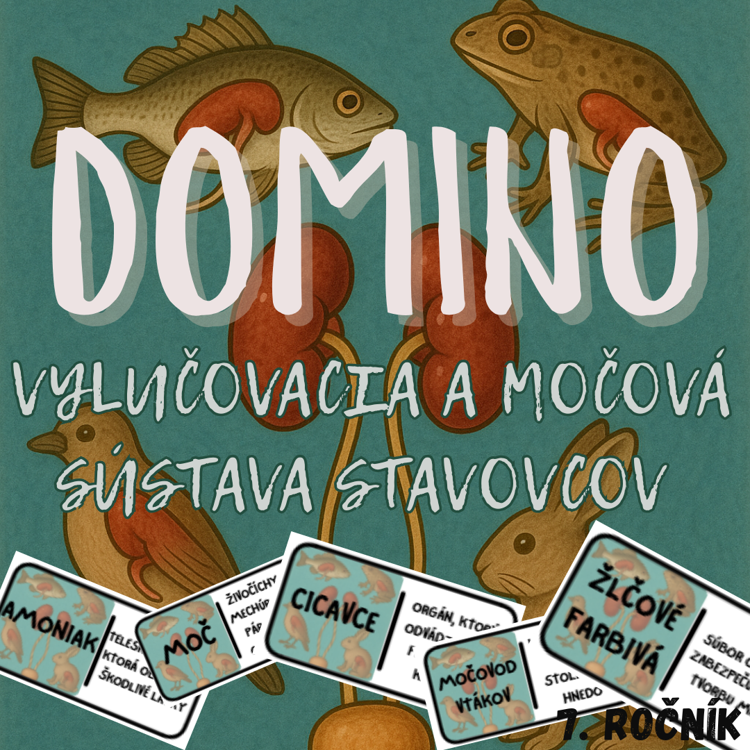 Materiál Domino – Vylučovacia a močová sústava stavovcov je interaktívna a hravá aktivita, ktorá pomáha žiakom 7. ročníka základnej školy zopakovať základné poznatky o stavbe a funkcii vylučovacej a močovej sústavy stavovcov.