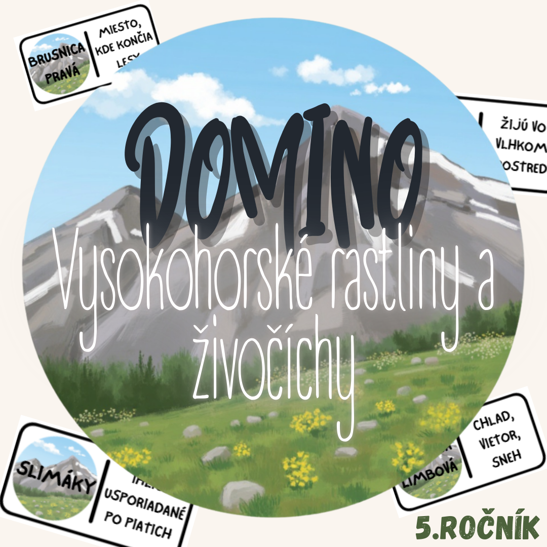 Materiál „Domino – Vysokohorské rastliny a živočíchy“ je didaktická a hravá edukačná aktivita určená pre žiakov 5. ročníka základnej školy. Prostredníctvom práce s domino kartičkami si žiaci upevňujú poznatky o rastlinách a živočíchoch žijúcich vo vysokohorskom prostredí a o ich prispôsobení sa náročným životným podmienkam.