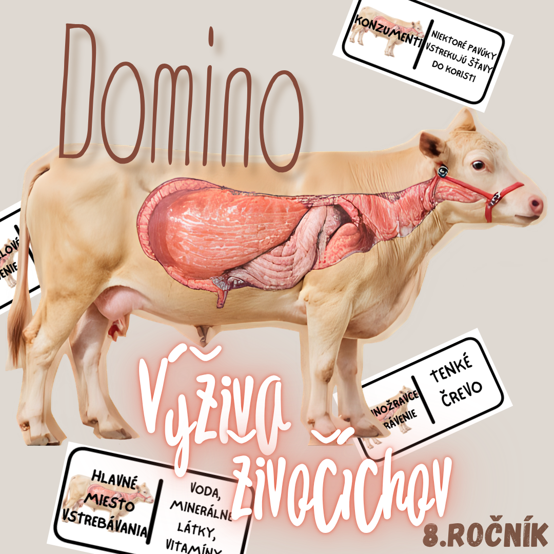Materiál Domino – Výživa živočíchov je zábavná a náučná aktivita, ktorá pomáha žiakom hravou formou opakovať a upevniť učivo o výžive a trávení živočíchov.